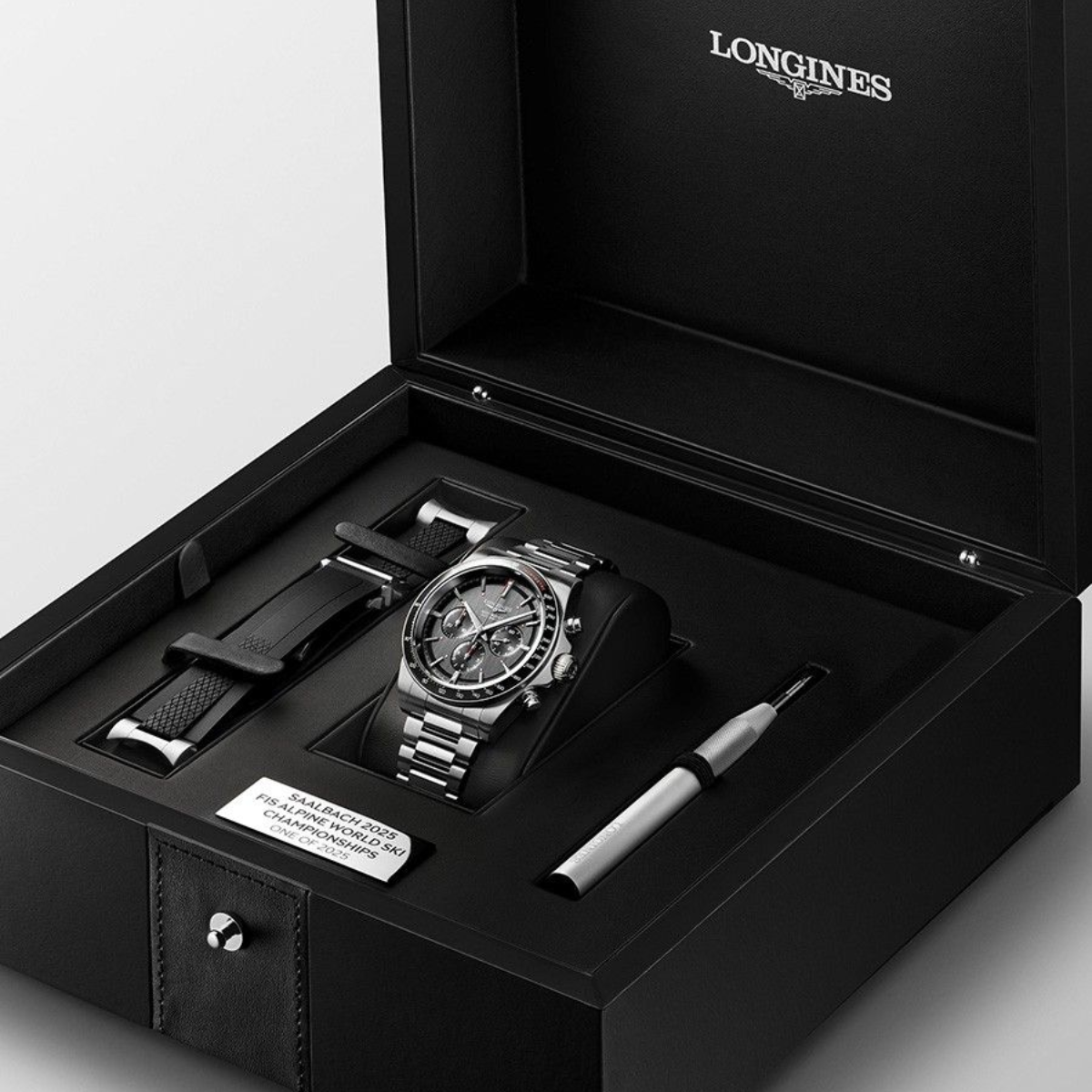 Deze Conquest Chronograph Ski Edition is uitgebracht ter gelegenheid van de 48e FIS Alpine World Ski Championships, die plaatsvinden van 4 tot 16 februari 2025 in Saalbach, Oostenrijk. Longines is al decennialang nauw betrokken bij de skisport als officiële timekeeper en onderstreept die rol met deze gelimiteerde uitgave.