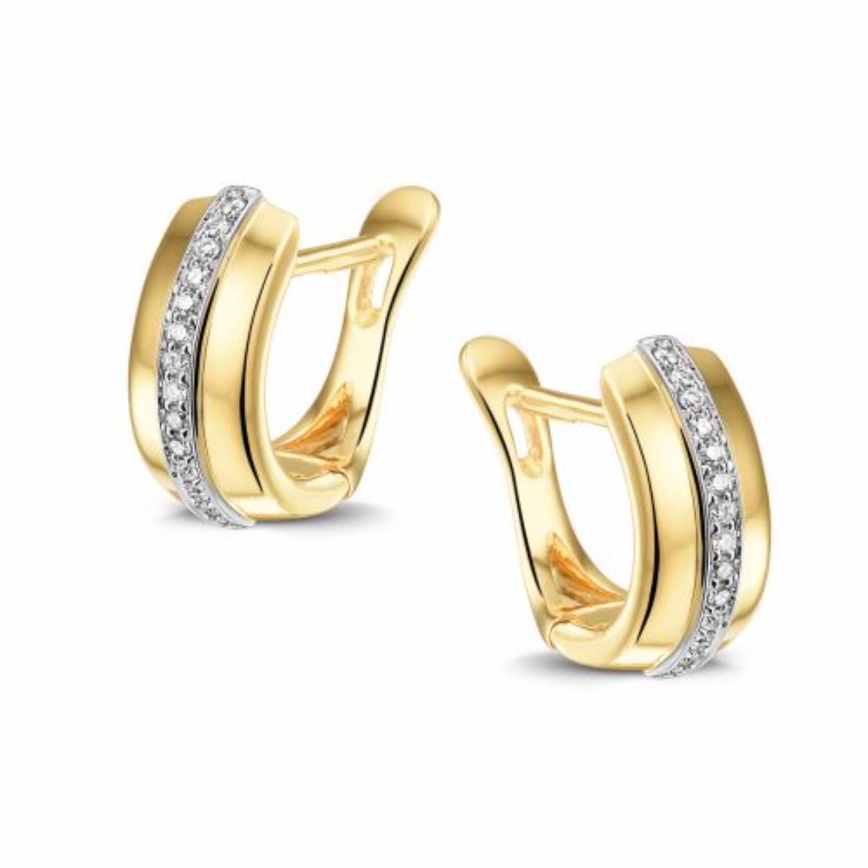 Prachtige 14krt bicolor oorbellen met diamant 28-0.12crt H SI