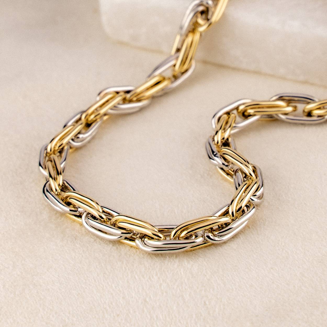 Prachtige 14krt bicolor gouden fantasiecollier. Het collier heeft een lengte van 45cm.