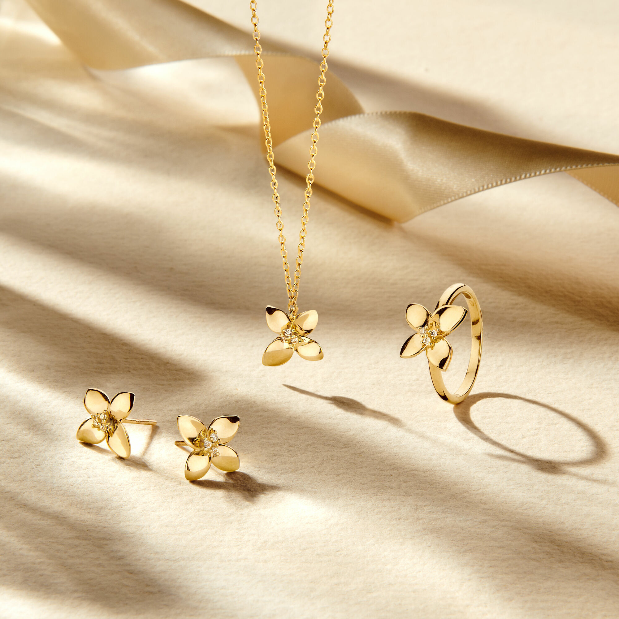 14krt geelgouden collier uitgevoerd met een bloem, zirkonia en een karabijn sluiting. Het collier heeft een draaglengte van 42cm en een extensie van 2cm. De schakelbreedte is 1.3mm.