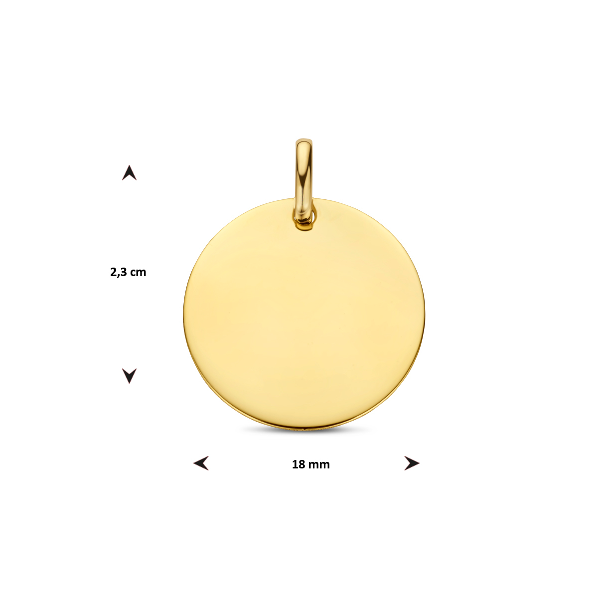 14krt geelgouden graveerhanger in de vorm van een rondje. De dikte van de plaat is 0.4mm.