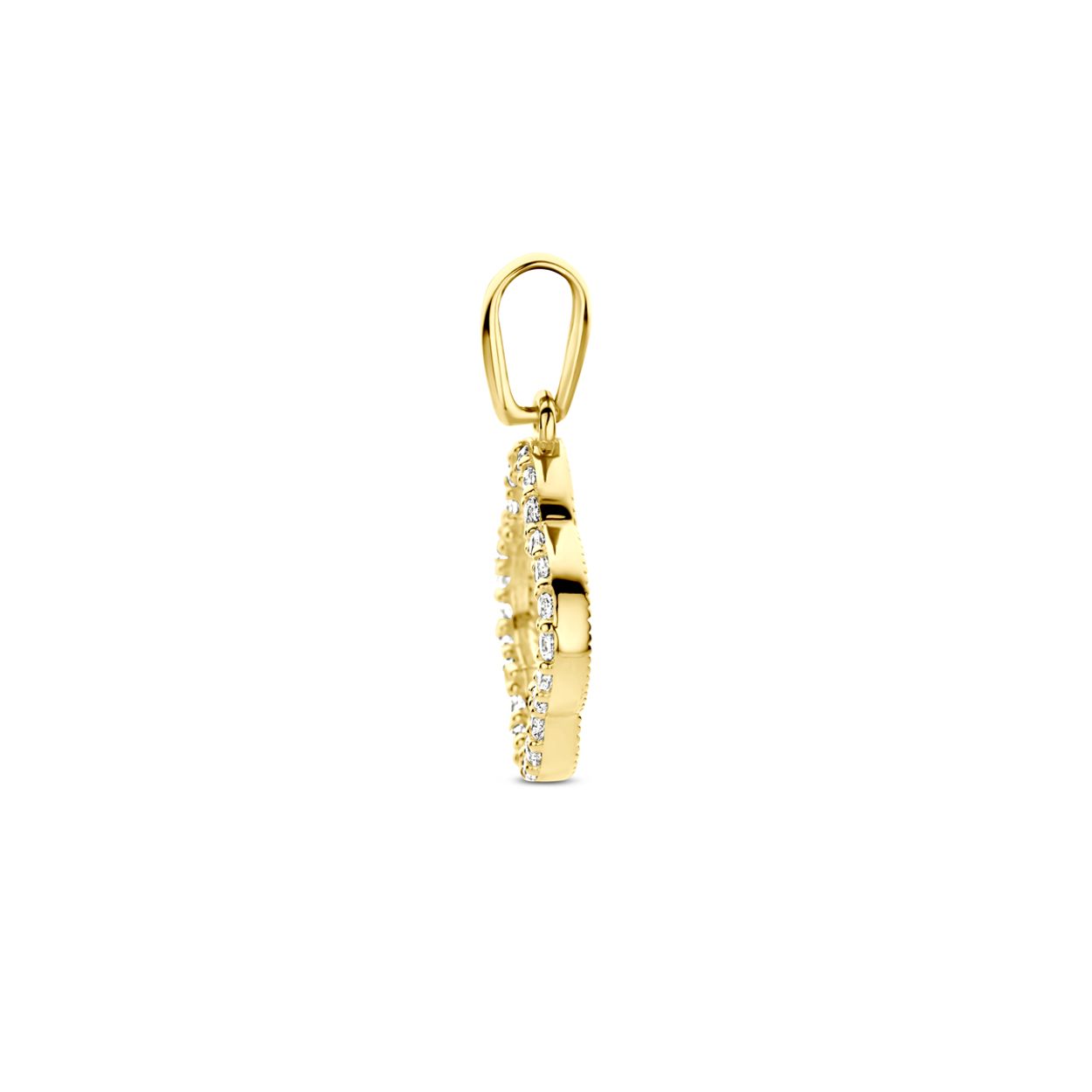 14k Geelgouden hanger in de vorm van een klavertje uitgevoerd met zirkonia.