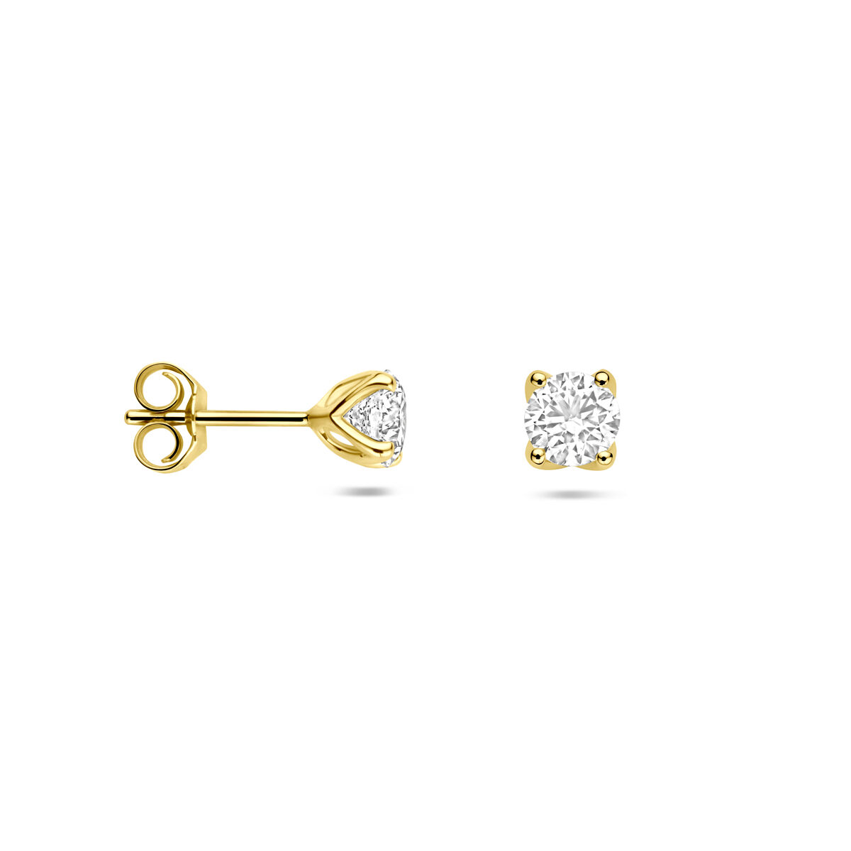 14krt geelgouden oorknoppen uitgevoerd met lab grown diamant. Het totale diamantgewicht is 1.0ct (2x0.50ct).