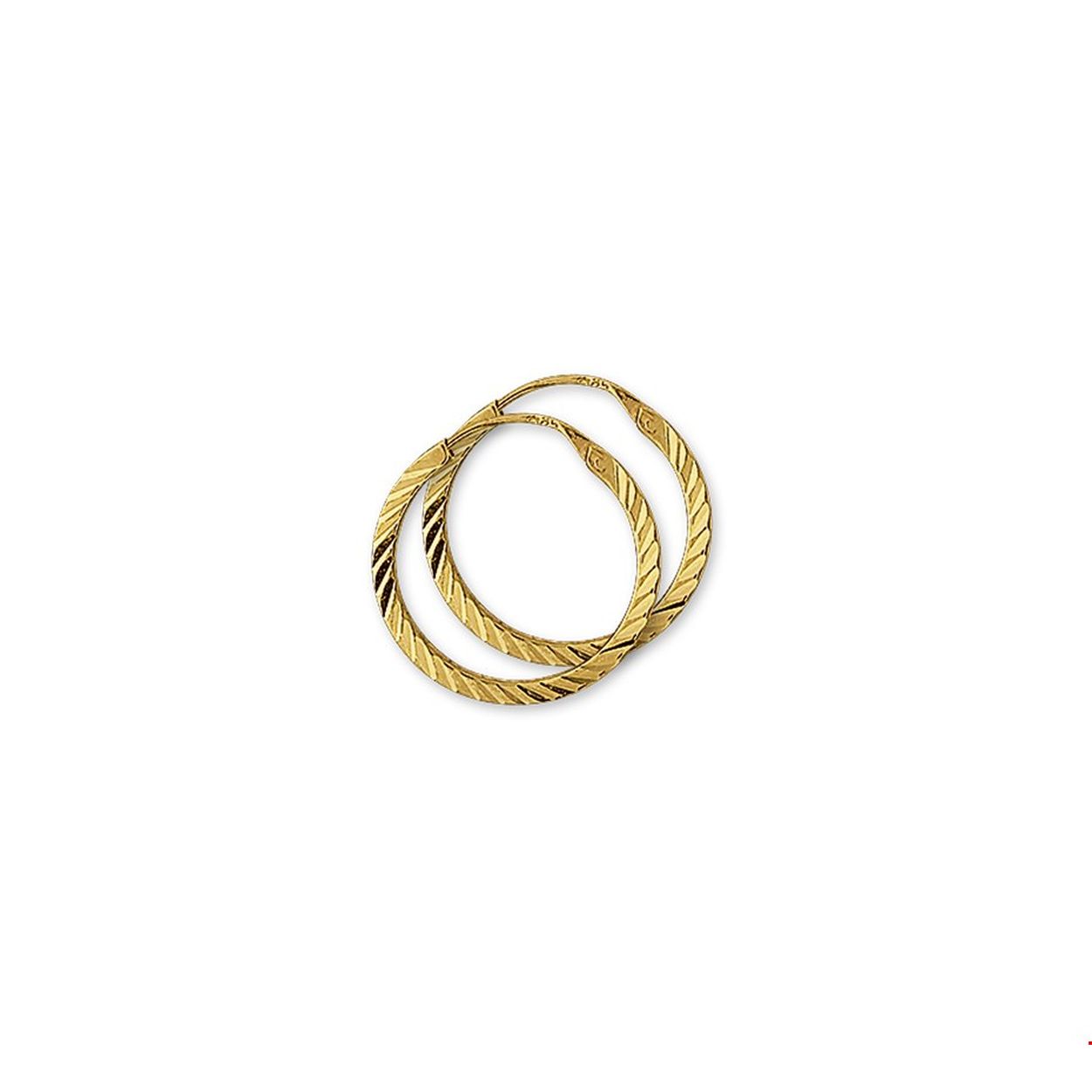 Geelgouden creolen met een vierkante gediamanteerde buis en een scharnier-sluiting.