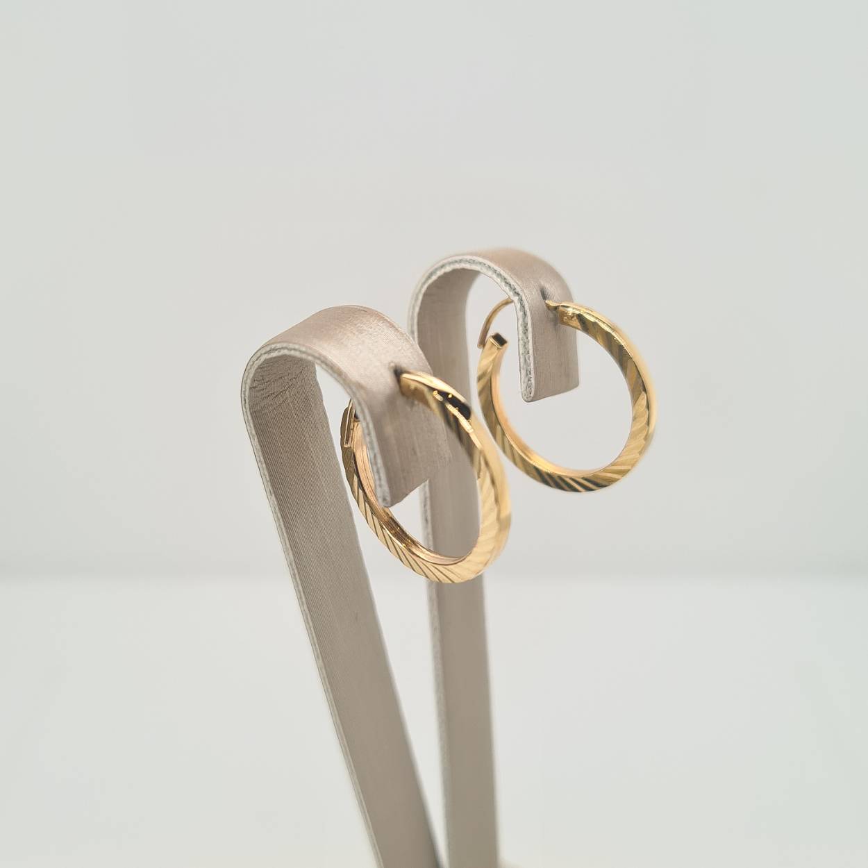 14krt geelgouden buis oorringen gediamanteerd met een scharniersluiting.