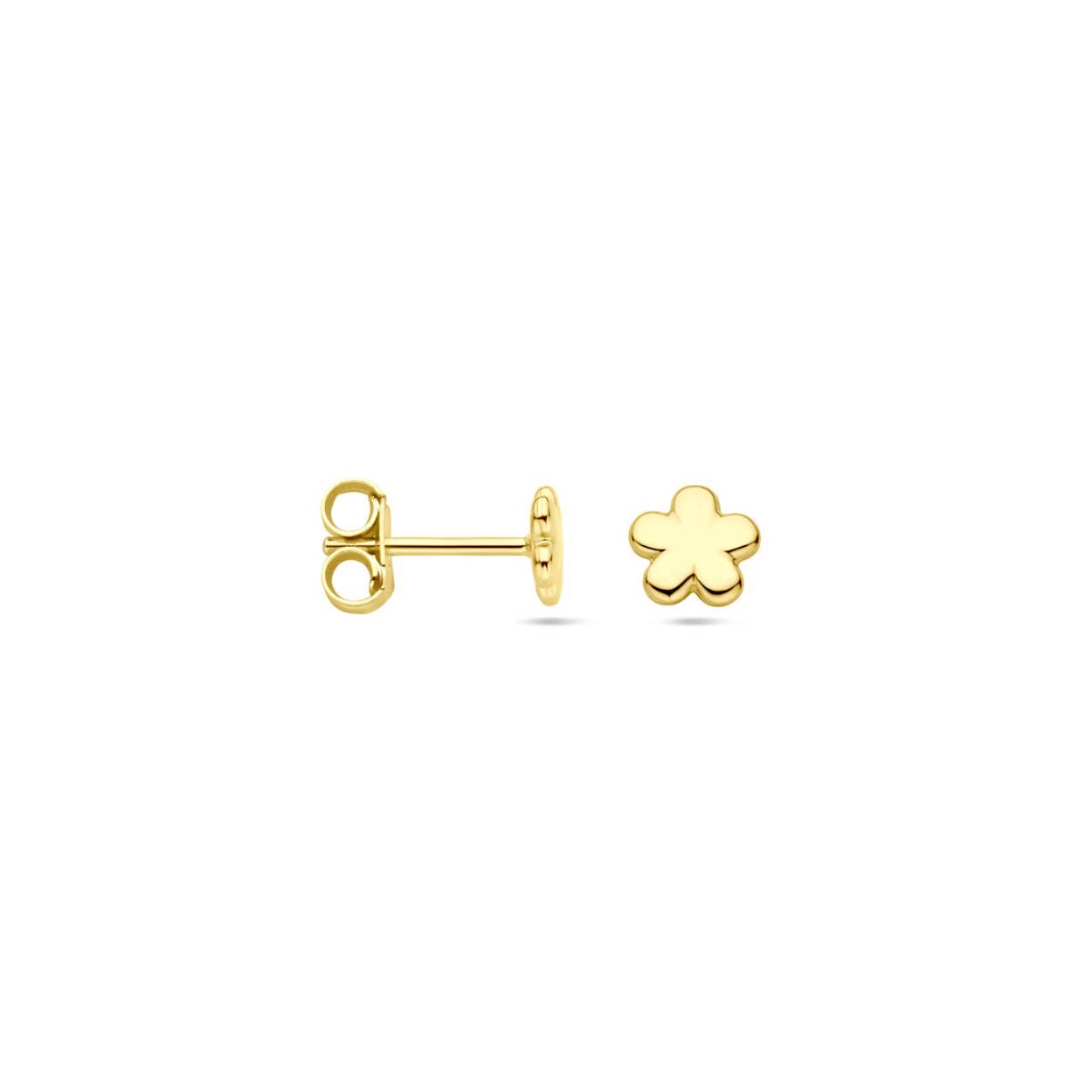 14krt geelgouden oorknoppen uitgevoerd in de vorm van een bloem. De oorknoppen hebben een diameter van 5.5mm.