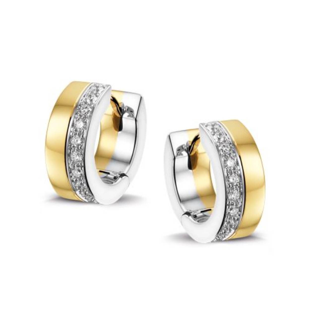 14krt bicolor oorbellen met diamant 20-0.18crt H SI