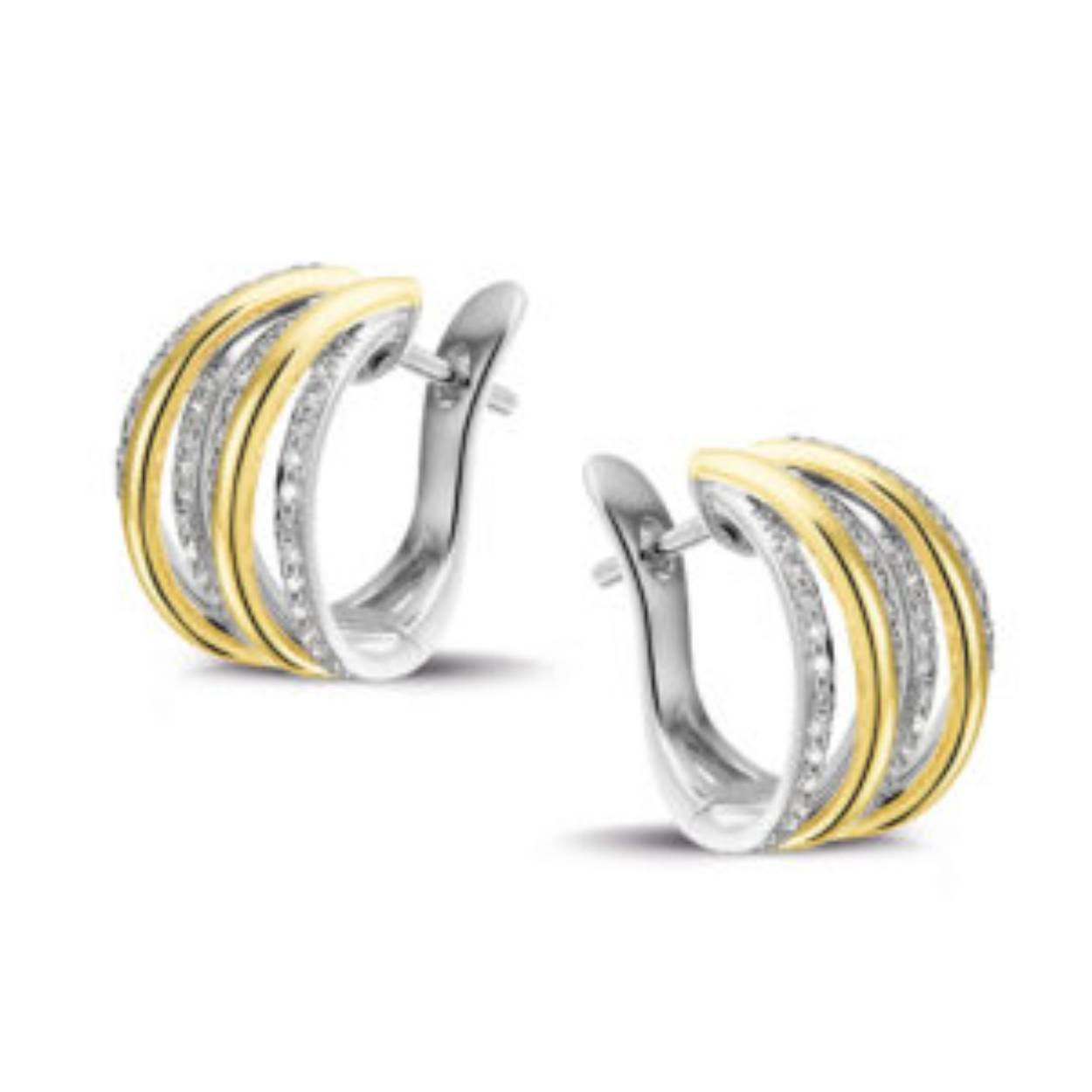 Prachtige 14krt gouden bicolor oorsieraden met 98 diamanten (0.38ct H SI)
