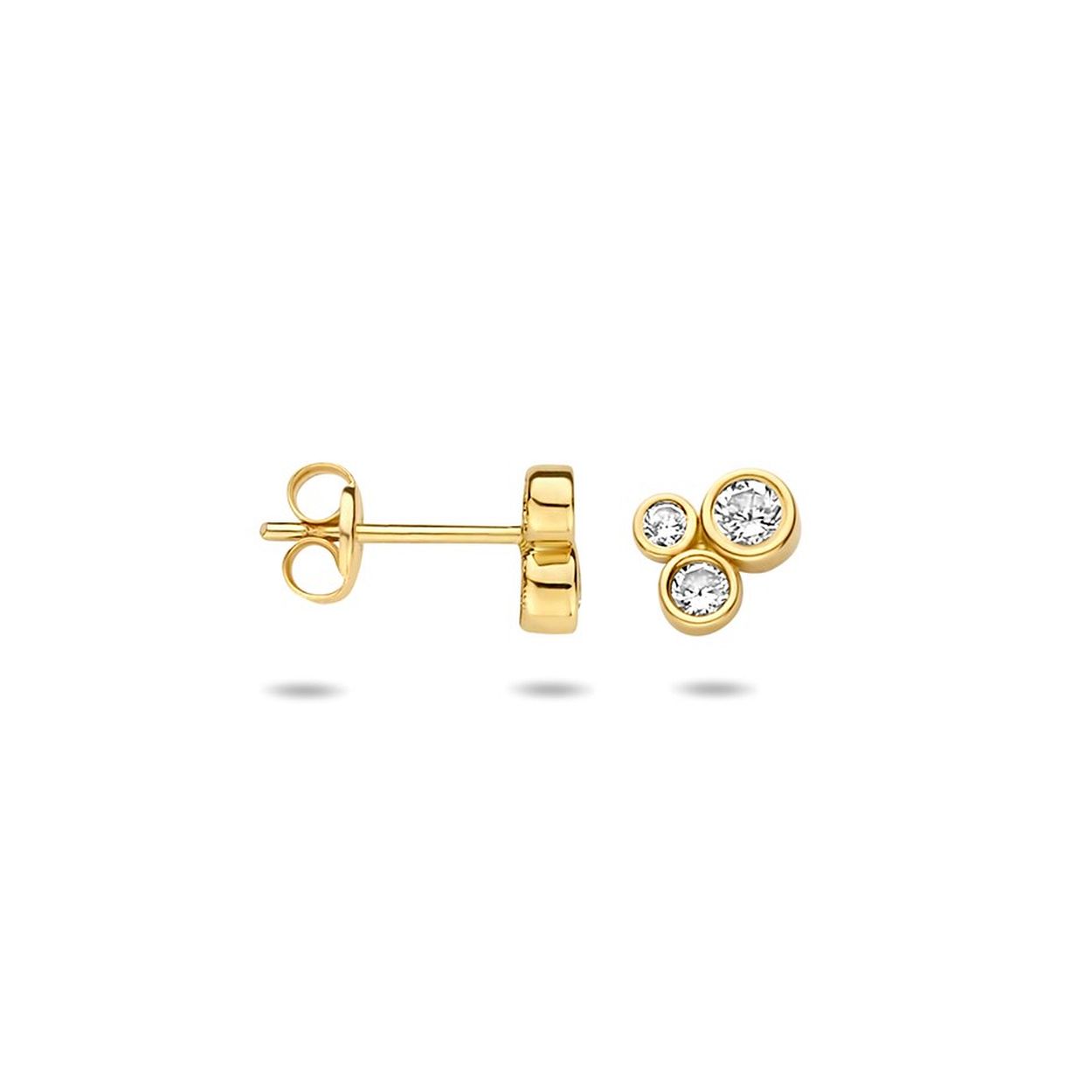 14k Geelgouden oorknoppen uitgevoerd met helder zirkonia. De oorknoppen hebben een afmeting van 6.5x5.5mm.