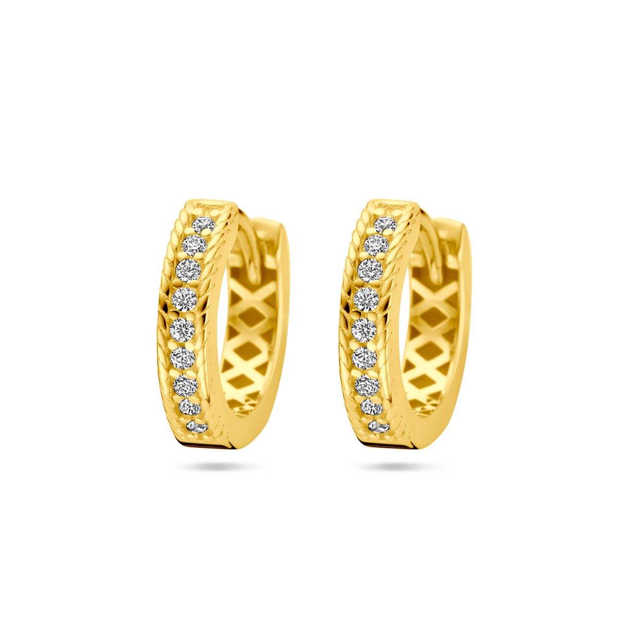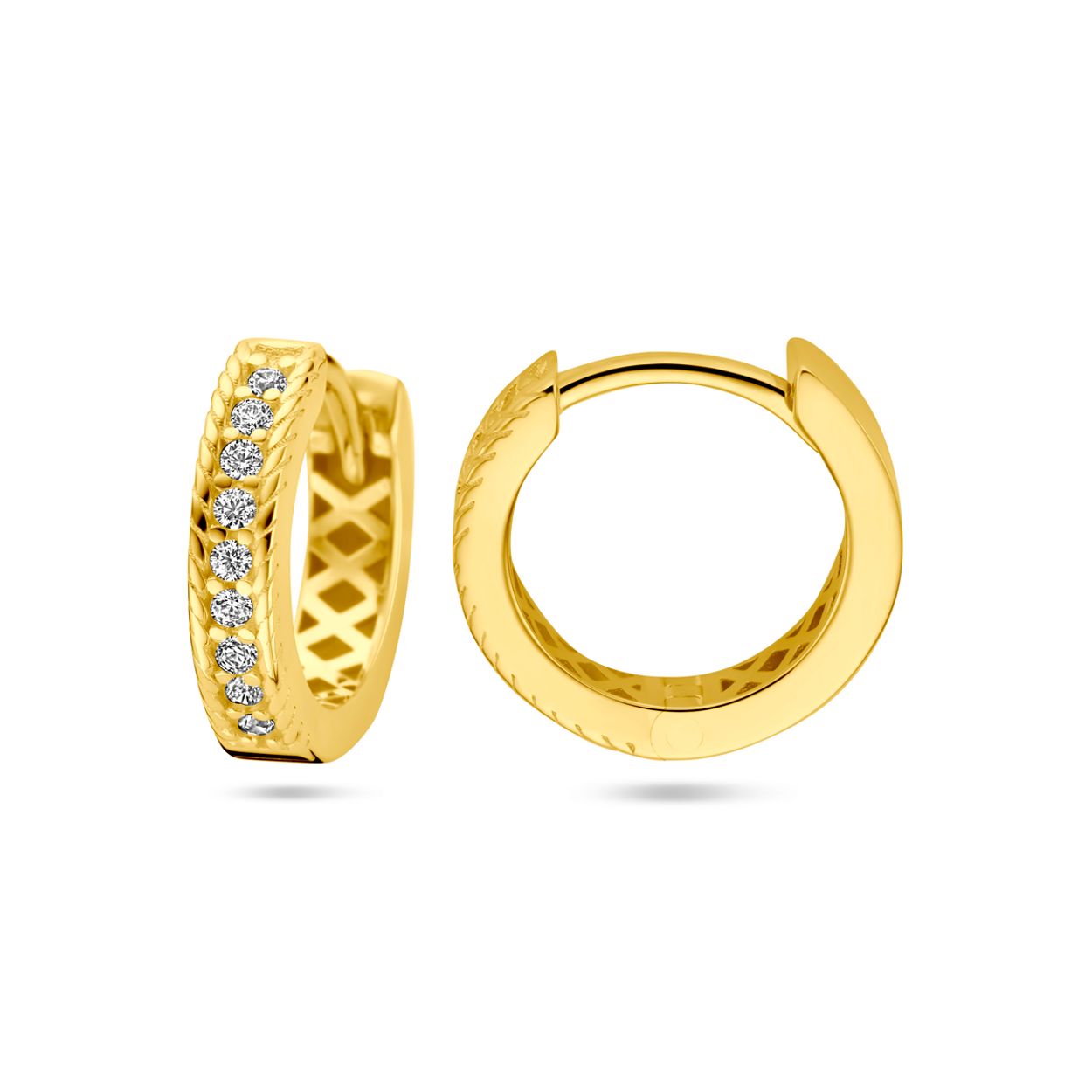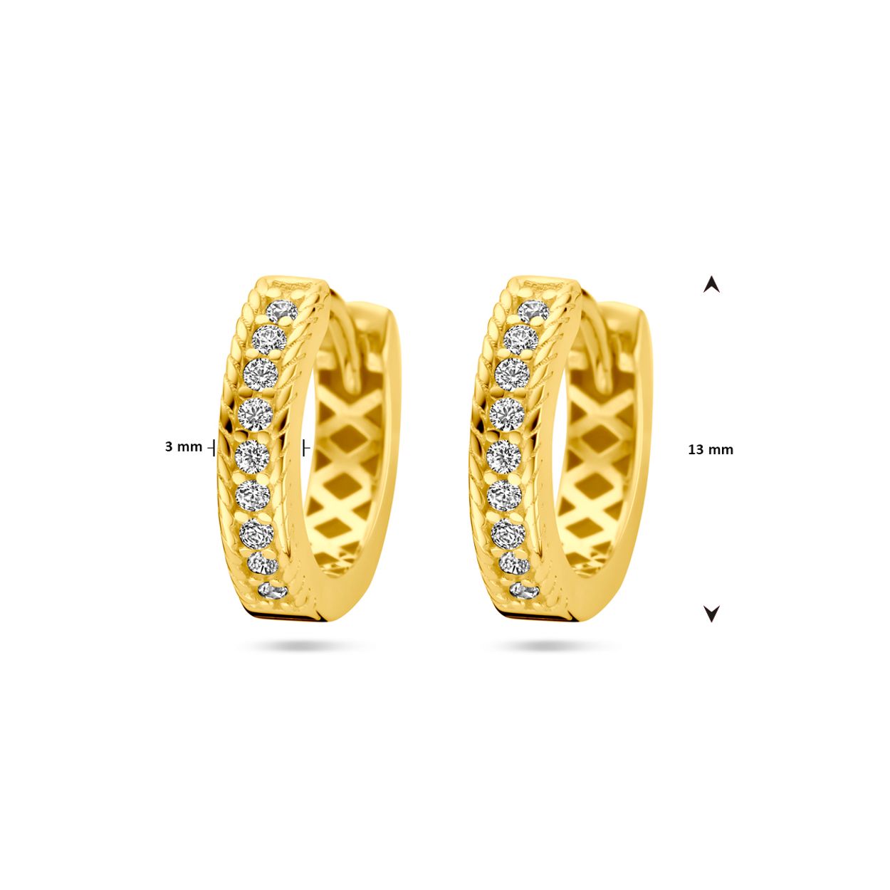 14k Geelgouden klapoorringen uitgevoerd met zirkonia. De klapoorringen hebben een afmeting van 13x3mm.