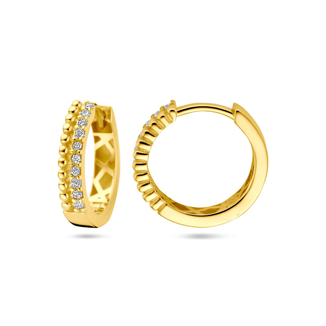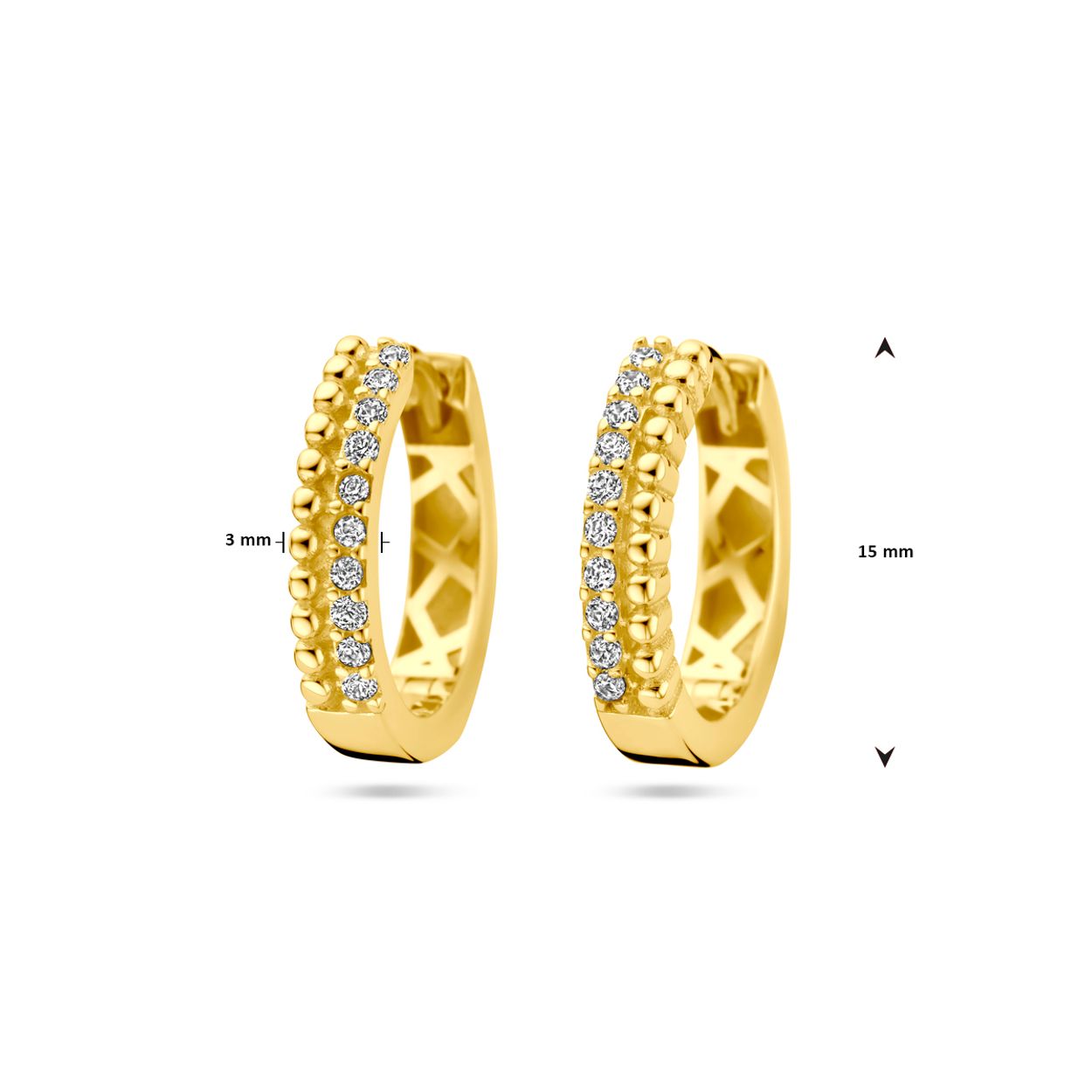 14krt geelgouden klapoorringen uitgevoerd met zirkonia. De klapoorringen hebben een afmeting van 15x3mm.
