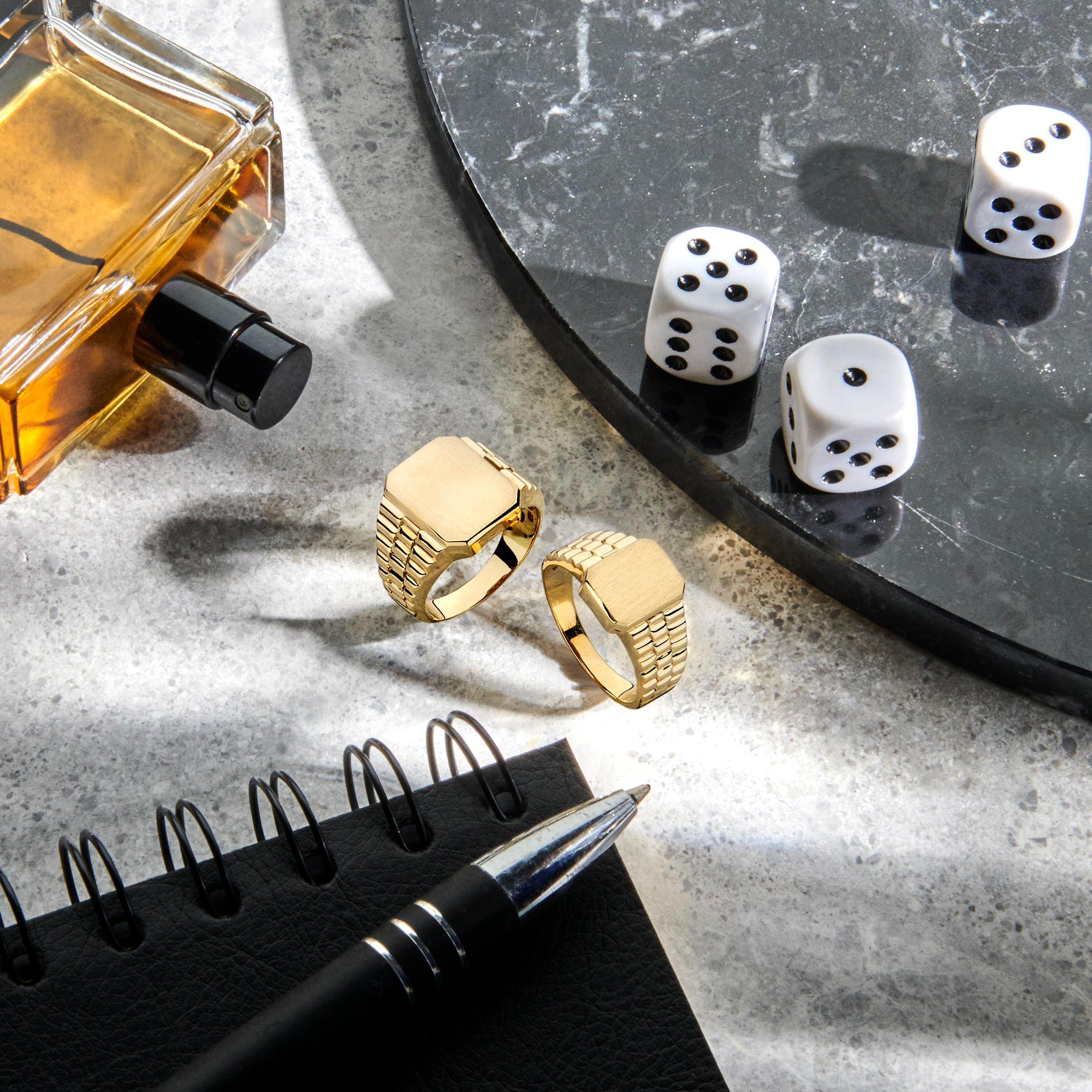 14krt geelgouden graveerring met een afmeting van 12.5x9.5mm.