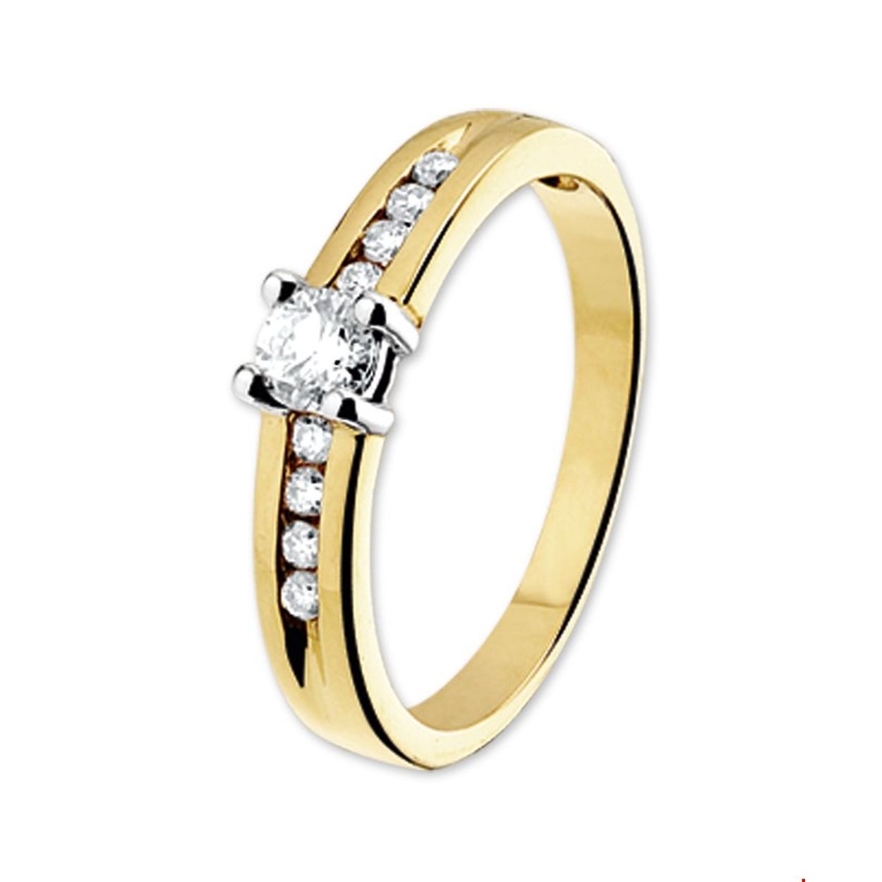 Prachtige 14krt bicolor wit- en geelgouden ring met diamant, 0,40crt H SI.