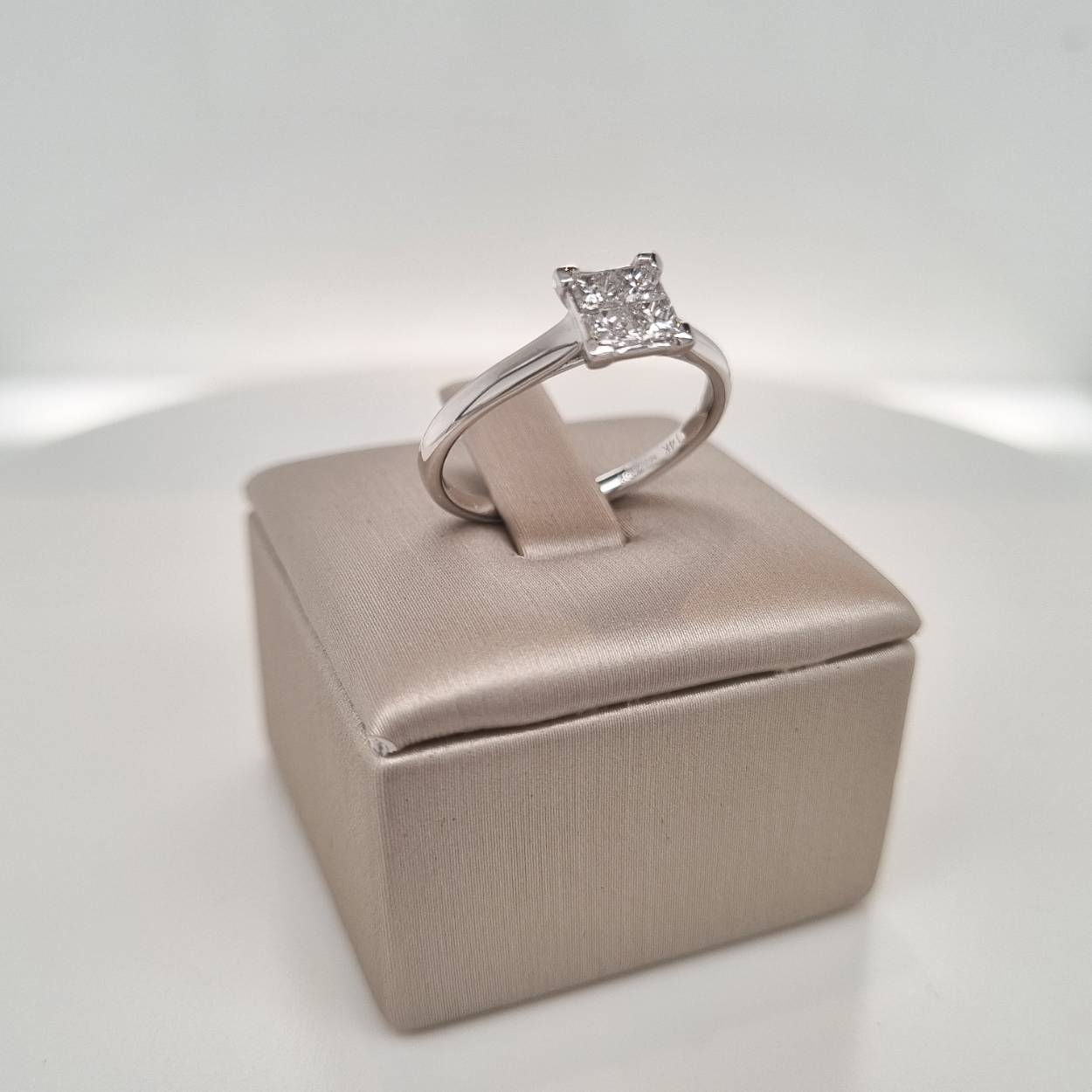 Prachtige 14krt witgouden ring met princess geslepen diamant, 0.36 crt. SI/TW.