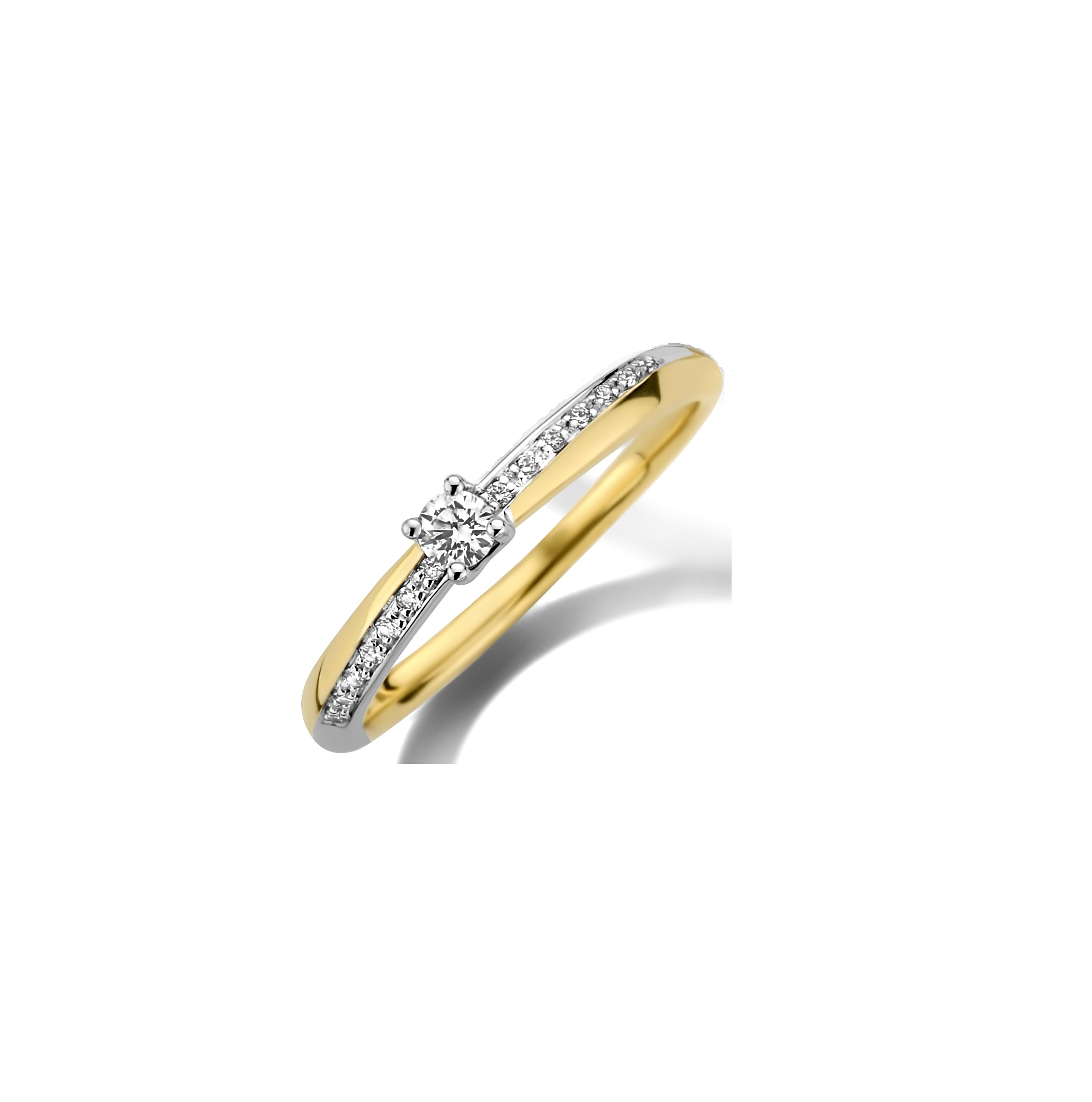 14krt bicolor gouden ring met diamant 0,15crt G SI1.