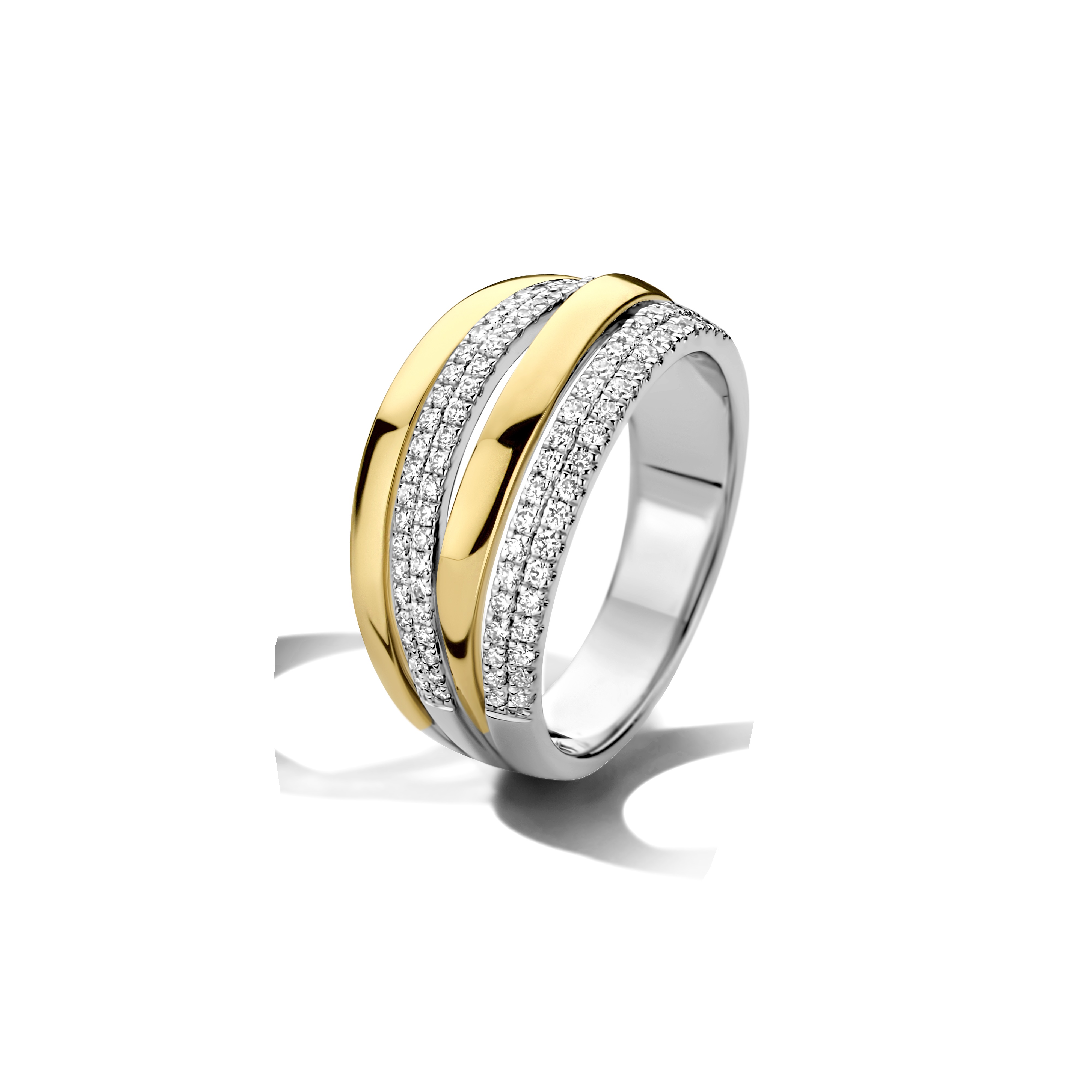 Prachtige 14krt bicolor gouden ring met diamant 0,47 G VSI. De maat van de ring is 55 (17,5). Heeft u een andere maat, neem dan gerust contact met ons op.