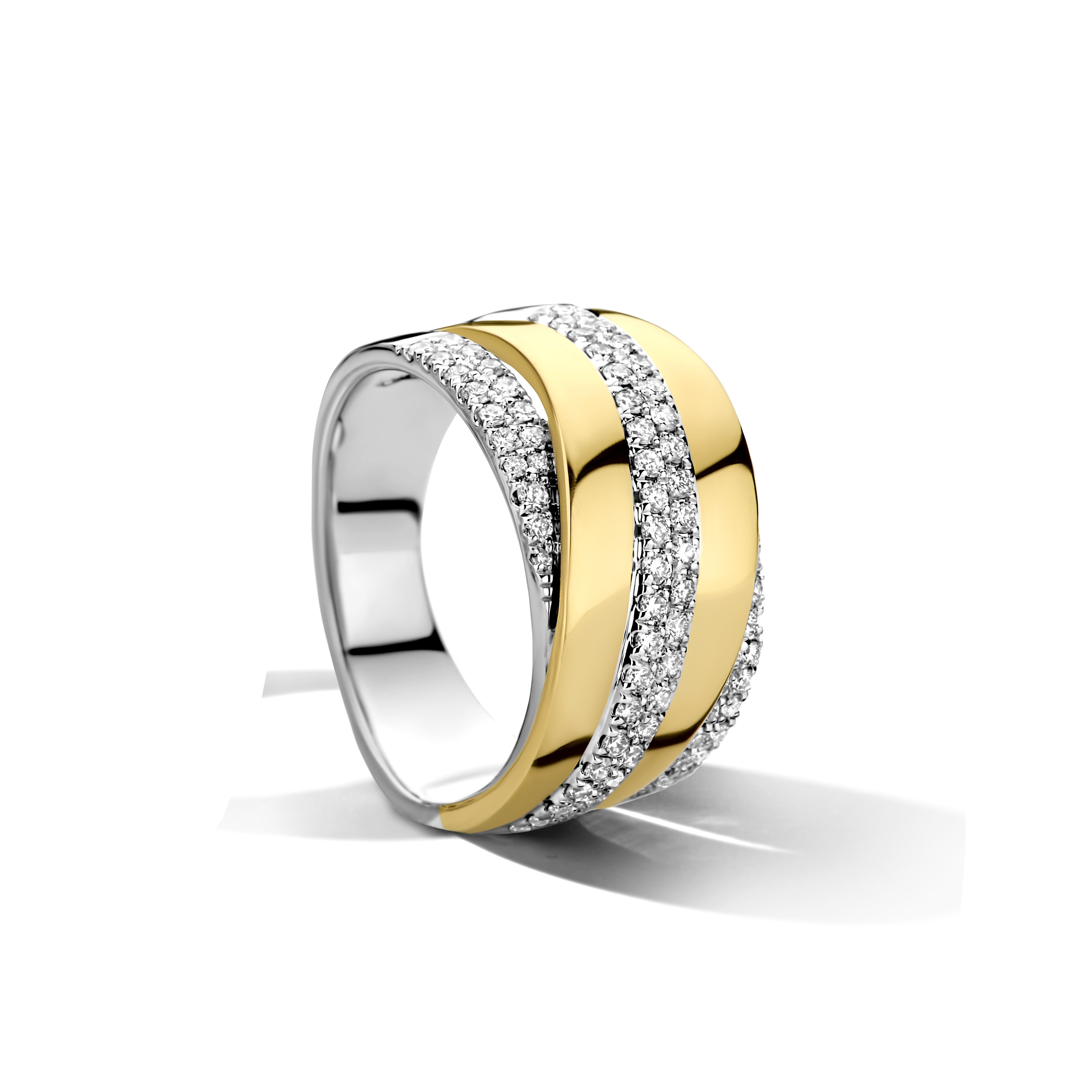 Prachtige 14krt bicolor gouden ring met diamant 0.56 G SI1. De maat van de ring is 55 (17.5). Heeft u een andere maat, neem dan gerust contact met ons op.
