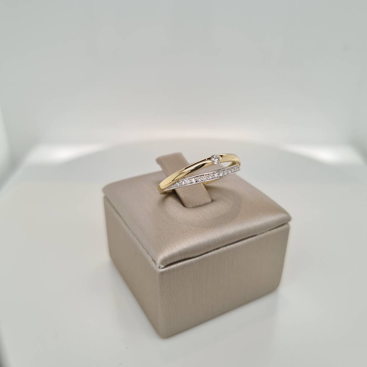 Prachtige 14krt gouden ring met diamant, 0,12crt H Si. De maat van de ring is 55 (17,5). Heeft u een andere ringmaat, neem dan gerust contact met ons op.