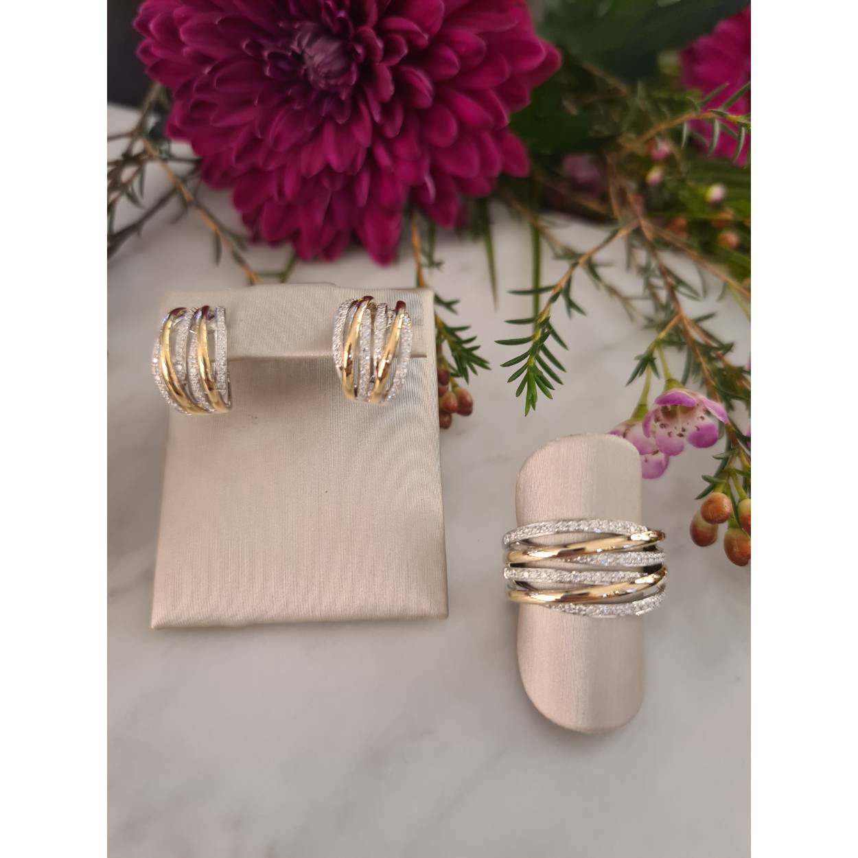 Prachtige 14krt bicolor gouden ring met diamant gezet 64-0,43 H/SI. De maat van de ring is 55 (17,5). Heeft u een andere maat, neem dan gerust contact met ons op.