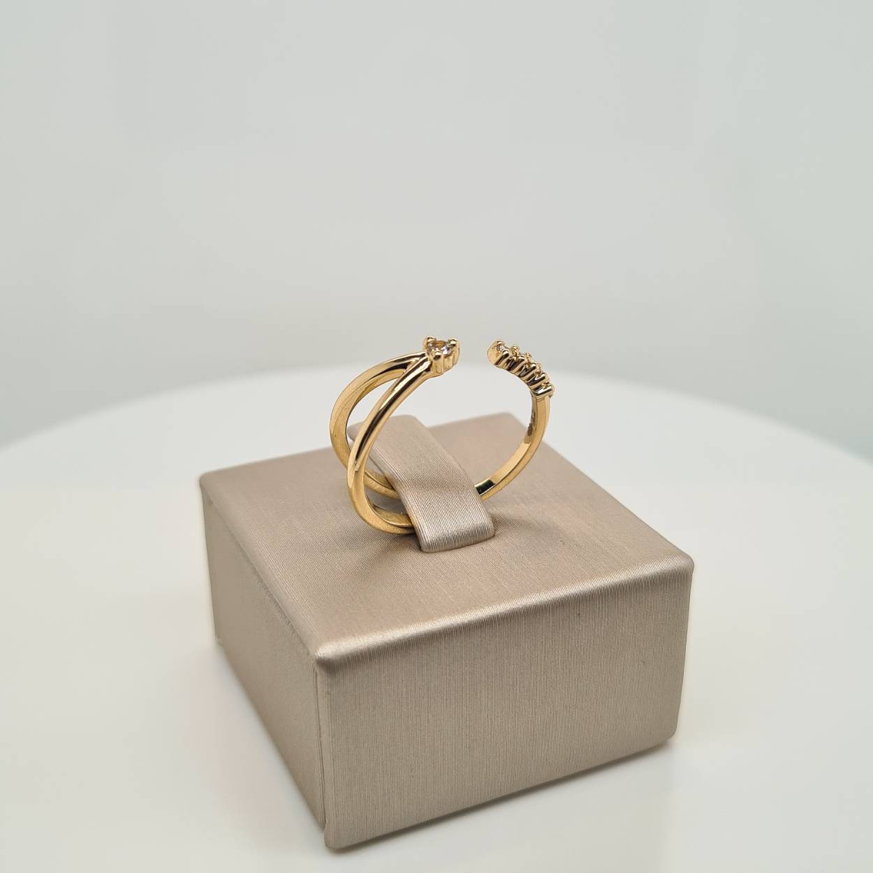 Prachtige 14 karaat gouden ring bezet met diamant. De maat van de ring is 53.