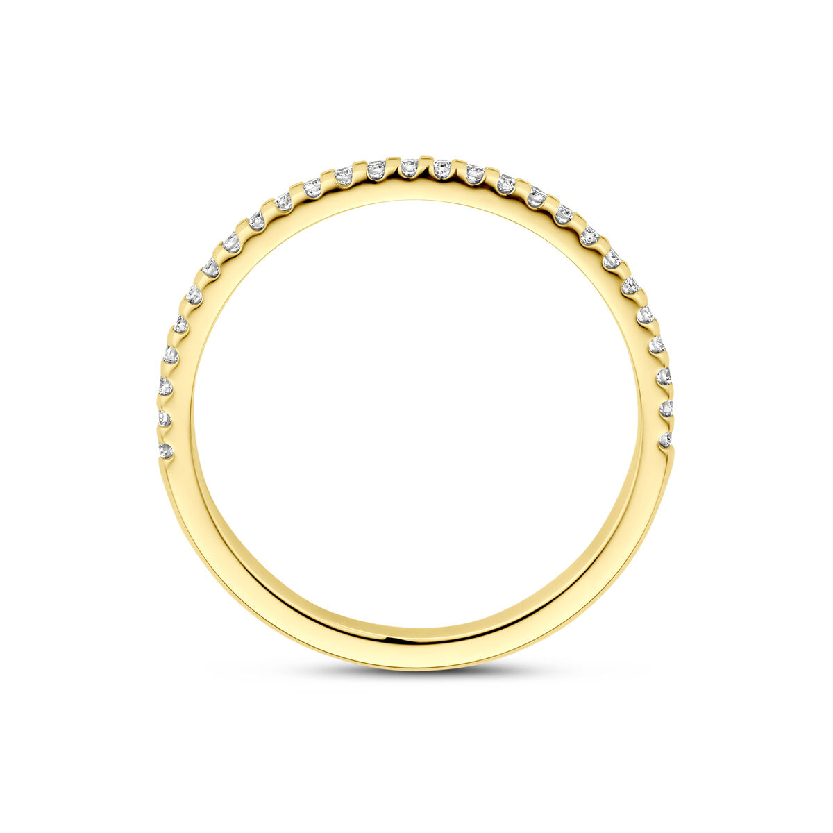 14krt geelgouden ring uitgevoerd met lab grown diamant. De ring heeft een breedte van 1.8mm. Het totale diamantgewicht is 0.15ct.