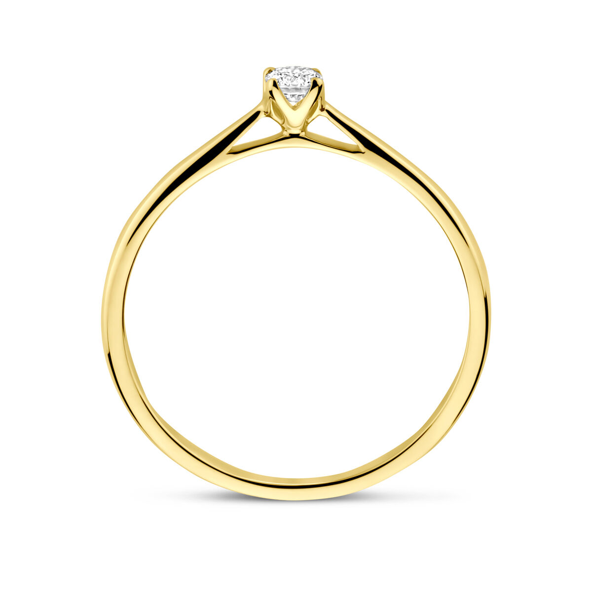 14krt geelgouden ring uitgevoerd met lab grown diamant. De ring heeft een breedte van 3.0mm. Het diamantgewicht is 0.10ct.