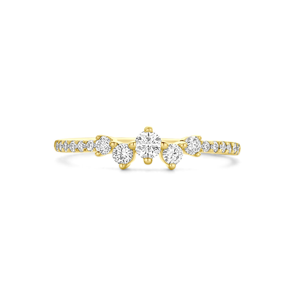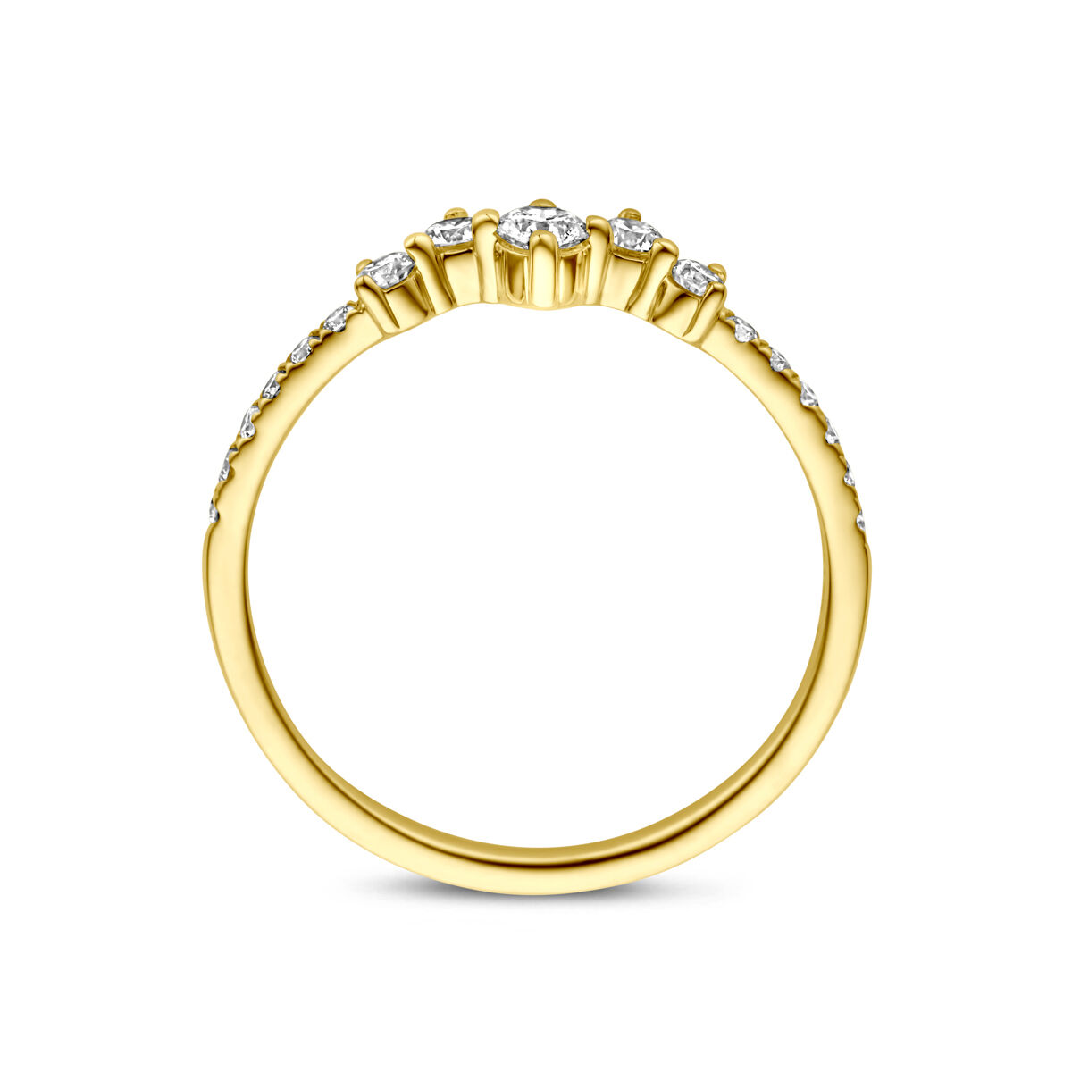 14krt geelgouden ring uitgevoerd met lab grown diamant. De ring heeft een breedte van 4.5mm. Het totale diamantgewicht is 0.33ct.