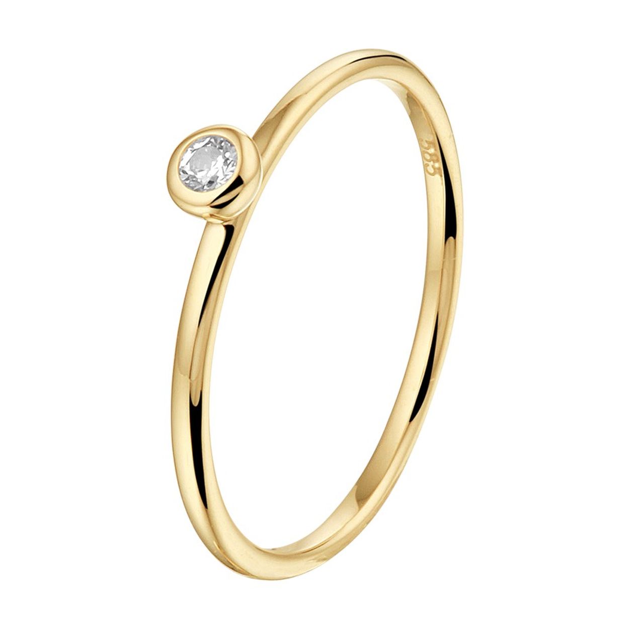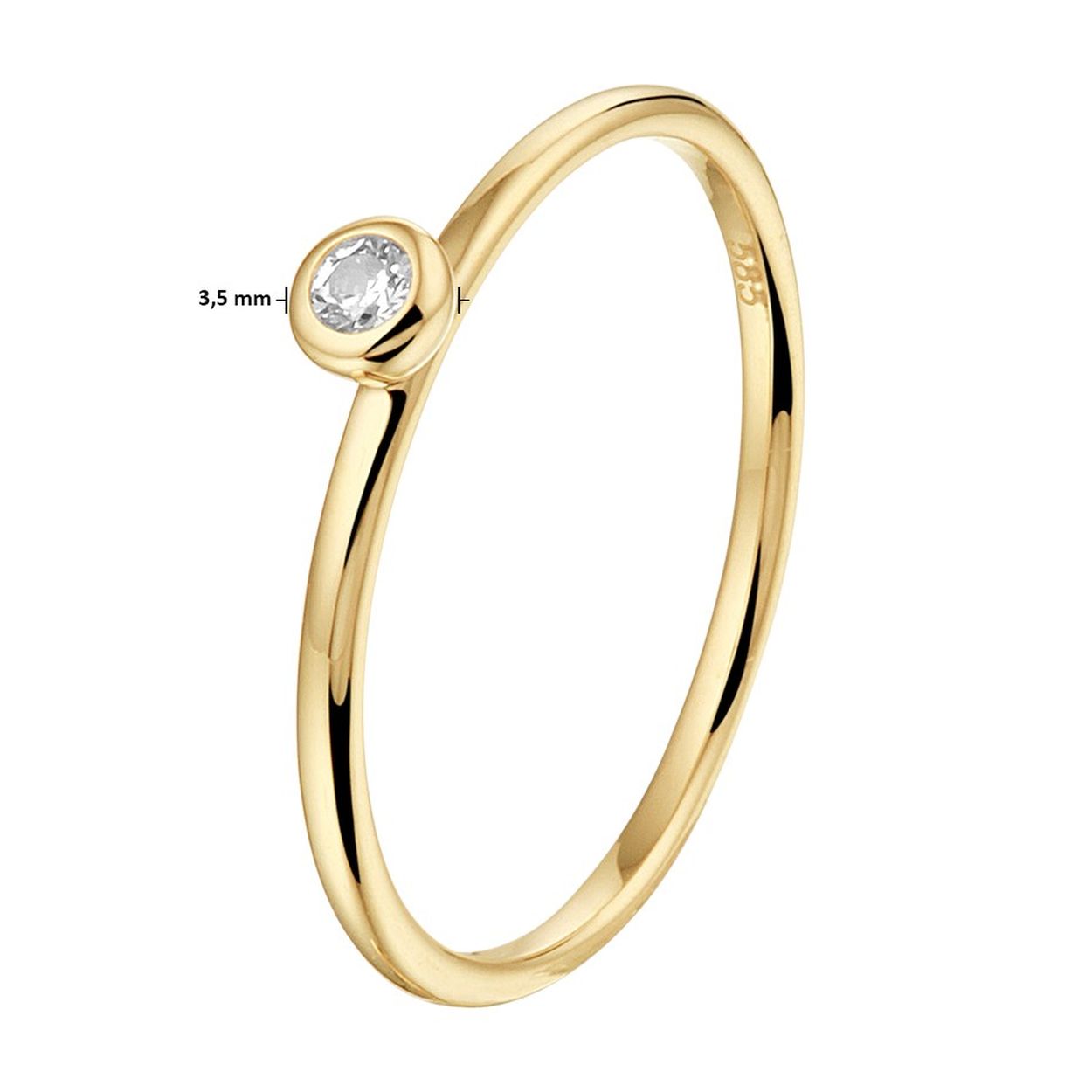 14krt geelgouden aanschuifring uitgevoerd met een schitterende zirkonia. De ring heeft een breedte van 3.5mm.