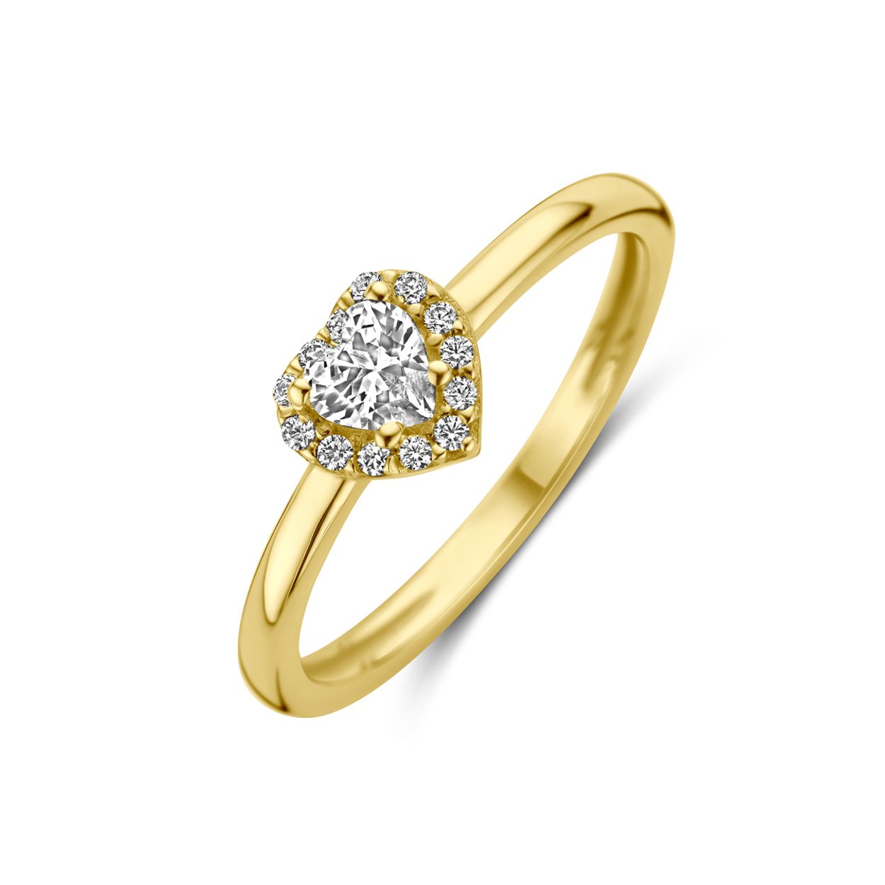 14k Geelgouden ring uitgevoerd met een hart en zirkonia. De ring heeft een breedte van 6.5mm.