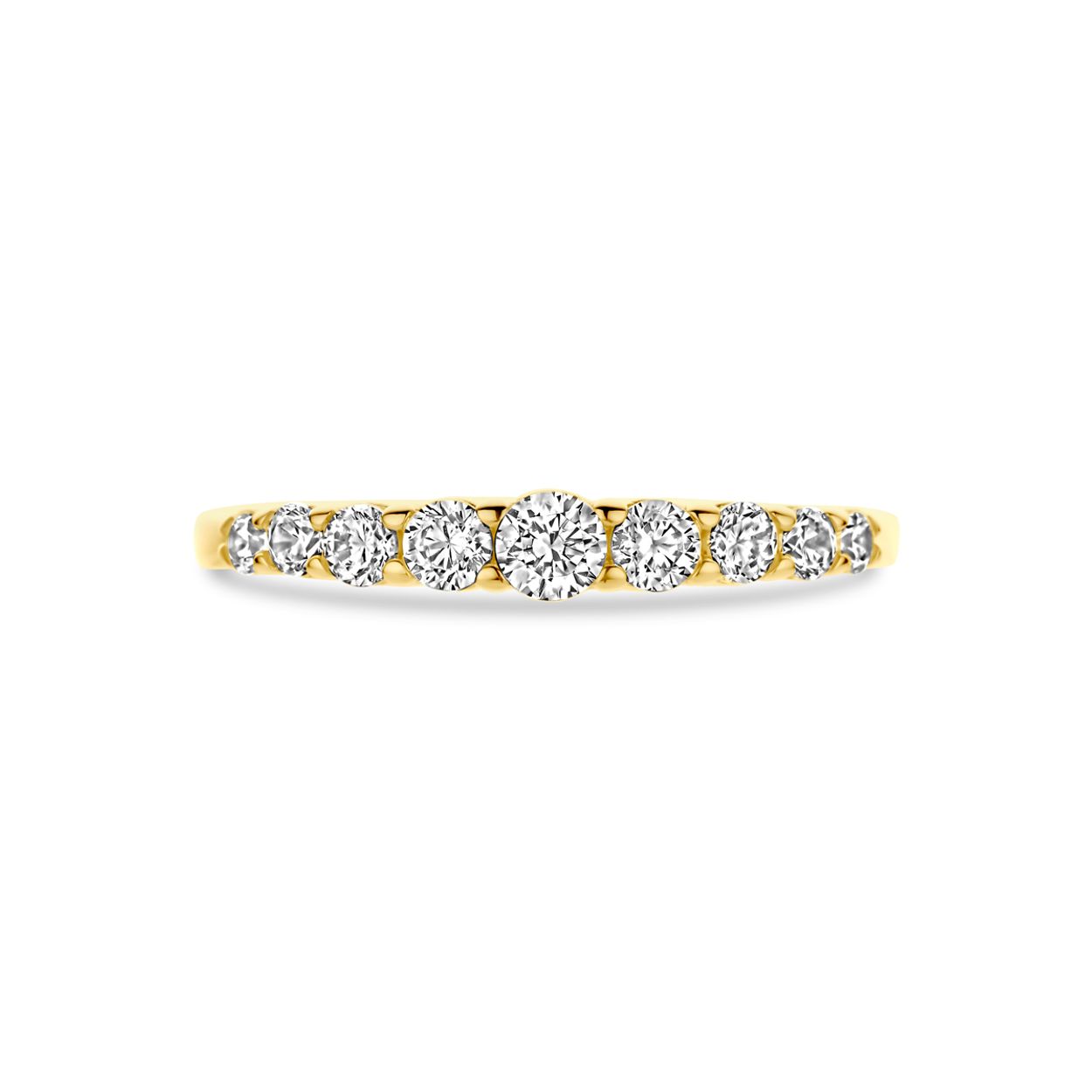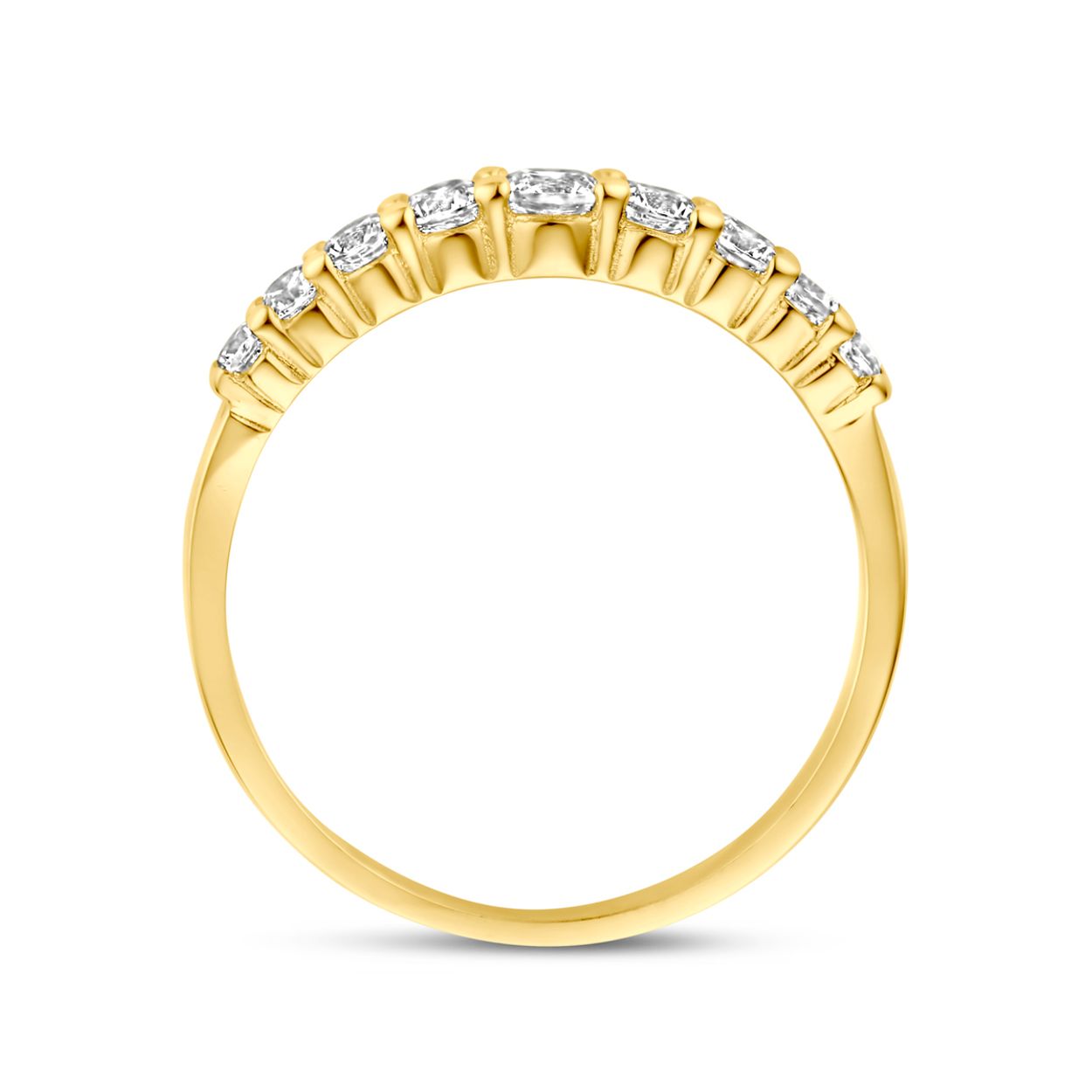 14krt geelgouden ring uitgevoerd met zirkonia. De ring heeft een breedte van 3mm.