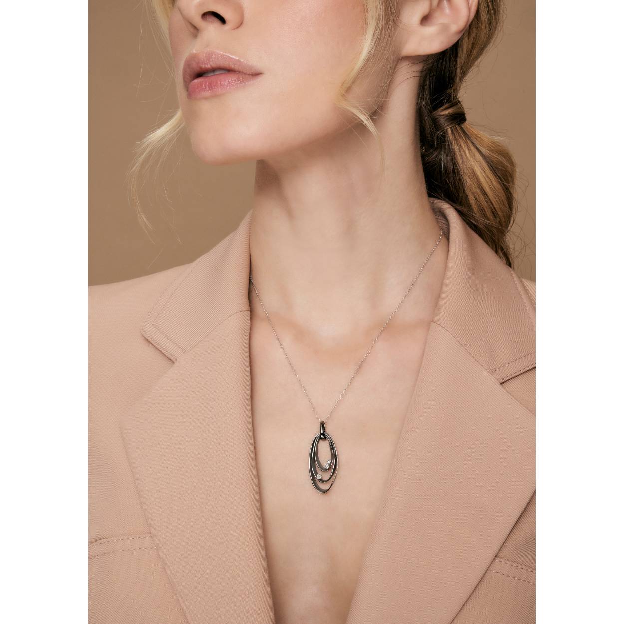 Dit speciale collier met hanger bestaat uit 3 lagen met een fluweelachtige afwerking. Het collier heeft een draaglengte van 45cm en is vervaardigd uit 18 karaat goud. De unieke kleur van de hanger is een creatie van Annamaria Cammillia na jarenlang onderzoeken en experimenteren. Het resultaat van deze experimenten zijn 8 unieke kleuren goud. De kleur Orange Apricot is een zachte oranje kleur, zo delicaat als de kleur van een abrikoos. Voor een verfijnde impact op de huid. De hanger is bezet met 3 briljant geslepen diamanten met een totaalgewicht van 0,17ct (Kleur G, zuiverheid VSI).