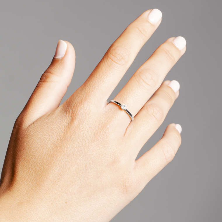 Prachtige 18krt witgouden solitair ring met diamant, 0,15crt H Si.