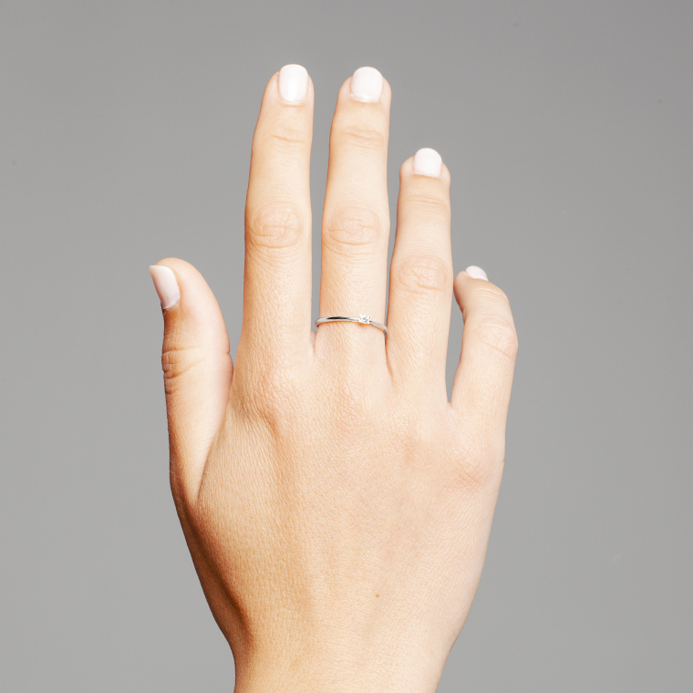 Prachtige 18krt witgouden solitaire ring met diamant, 0,15crt H Si.