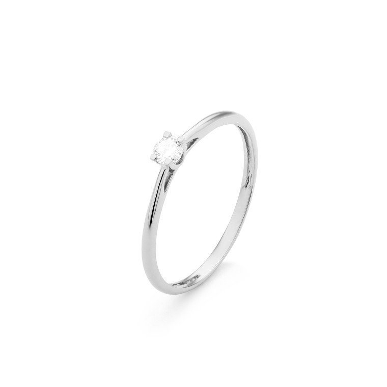 Prachtige 18krt witgouden solitair ring met diamant, 0,10crt H Si.