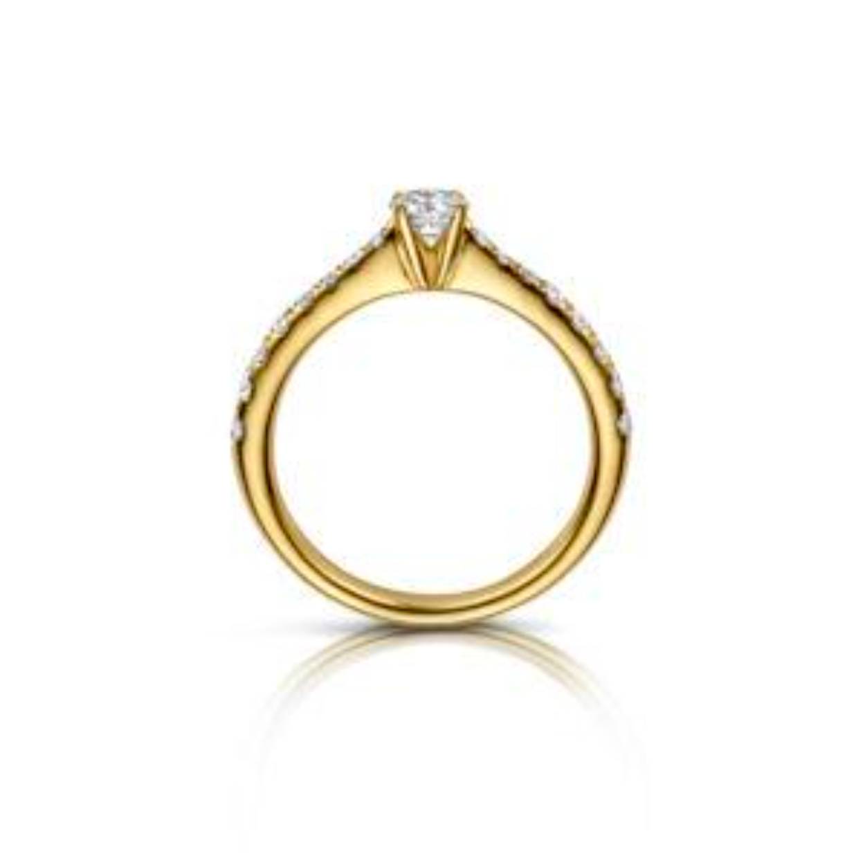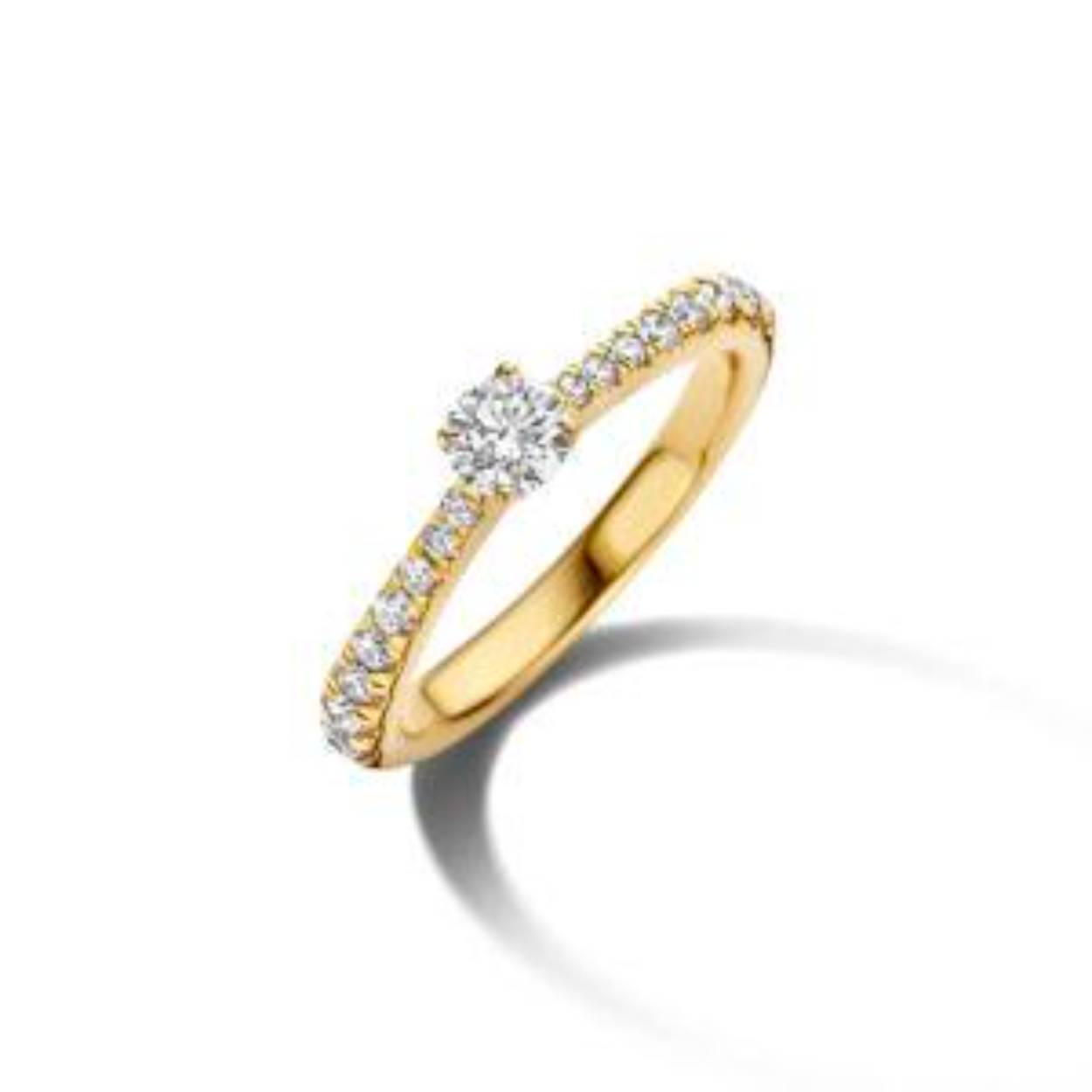Prachtige 18krt gouden solitair ring. Met 17 diamanten van totaal 0,72 caraat H SI.
