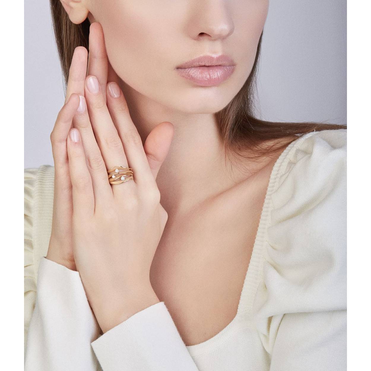 De onregelmatige rondingen van deze ring bootsen de dynamiek van woestijnduinen na. De ring is vervaardigd uit 18 karaat goud en voorzien van een unieke goudkleur. De ring is bezet met 3 briljant geslepen diamanten met een totaalgewicht van 0,18ct (Kleur G, zuiverheid VSI). De afwisseling tussen fluweelachtige oppervlakken en glanzend goud op de dunne gouden randen zijn kenmerkend voor de Dune collectie. De kleur van de ring is Orange Apricot, een zachte oranje kleur, zo delicaat als de kleur van een abrikoos. Voor een verfijnde impact op de huid. De kleur is een unieke creatie van het merk waar zij jarenlang onderzoeken en experimenten voor hebben gedaan.