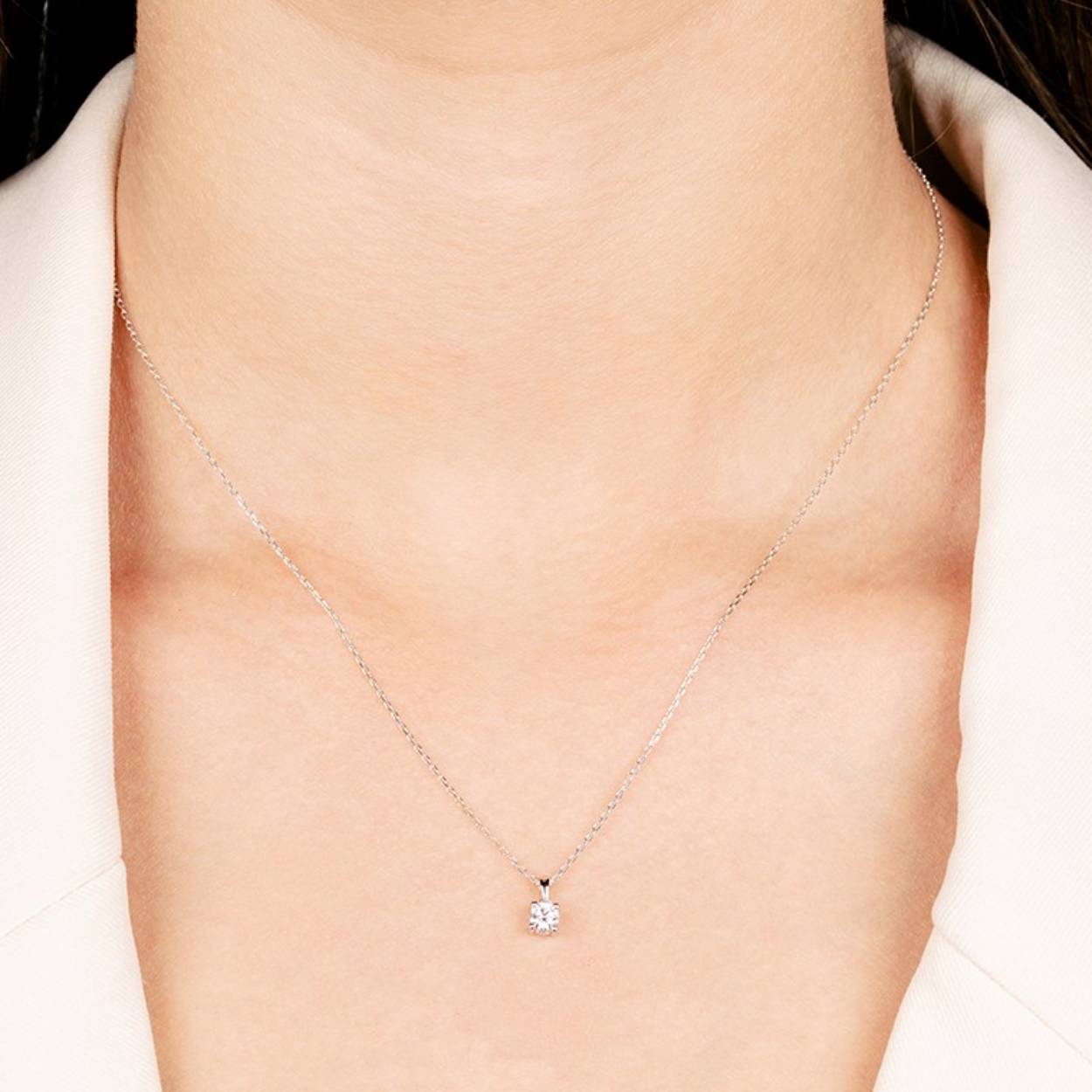Prachtige 18 karaat witgouden collier met solitaire hanger, bezet met 0.2ct (SI1 H) diamant