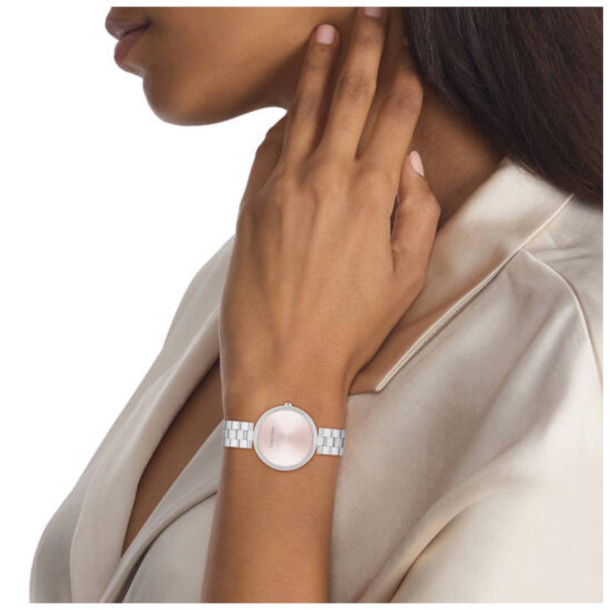 Dit Calvin Klein horloge heeft een stalen kast en band. Het horloge is geschikt voor iedere gelegenheid door zijn minimalistische uitstraling. Het horloge heeft een gevlochten look op de bezel. De roze wijzerplaat wordt afgeschermd door mineraalglas. Het horloge is waterbestendig tot 3atm.