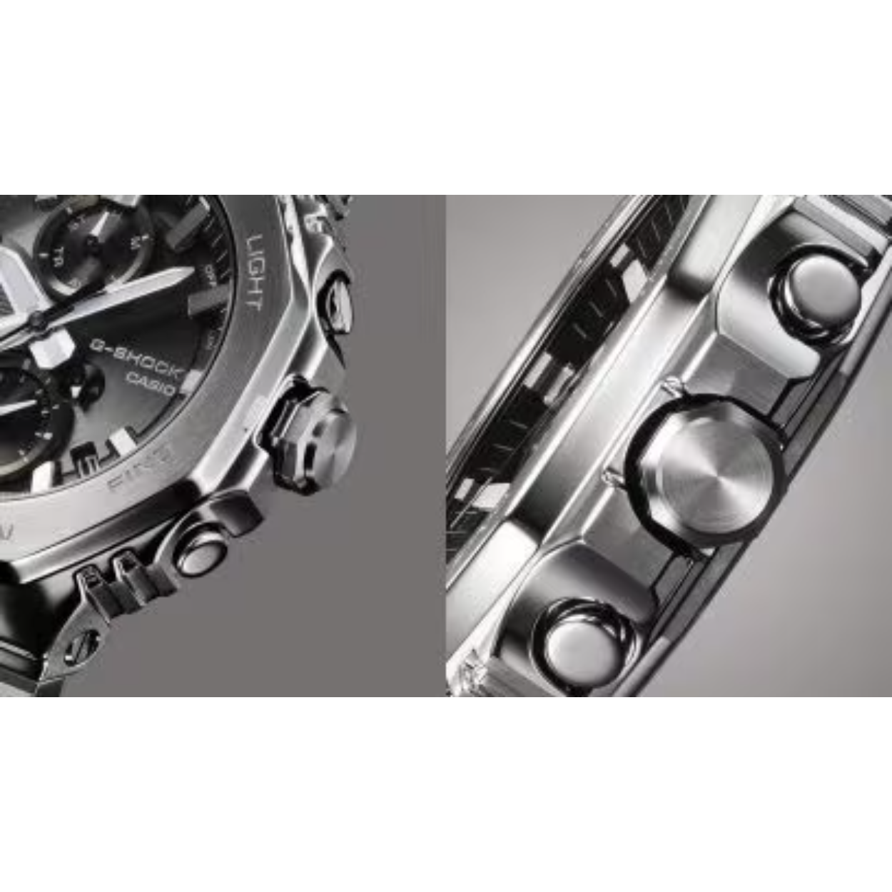 De kroon met schroefvergrendeling is ontworpen in dezelfde achthoekige vorm als de rand voor een compactere kast zonder dat dit ten koste gaat van de uitstekende G-SHOCK-schokbestendigheid.
