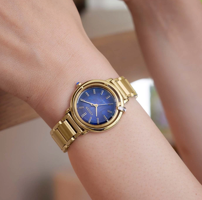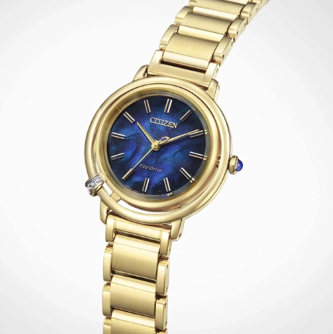 Deze elegante Citizen L Limited Edition valt op door de vergulde stalen horlogekast met drie fonkelende diamanten en een diepblauwe wijzerplaat met goudkleurige streepindexen. Het horloge is voorzien van Eco-Drive technologie, die garandeert dat de batterij niet hoeft te worden verwisseld. Met een nauwkeurigheid van +/- 15 seconden per maand en een gangreserve van maximaal 180 dagen biedt het horloge een betrouwbare precisie. Het krasbestendige saffierglas beschermt de wijzerplaat, terwijl de solide roestvrijstalen horlogeband met goudkleurige Double Push-sluiting comfort en veiligheid combineert. Dit model, dat is gelimiteerd tot 2000 stuks, is waterdicht tot 5 bar en een tijdloos accessoire voor veeleisende dragers.