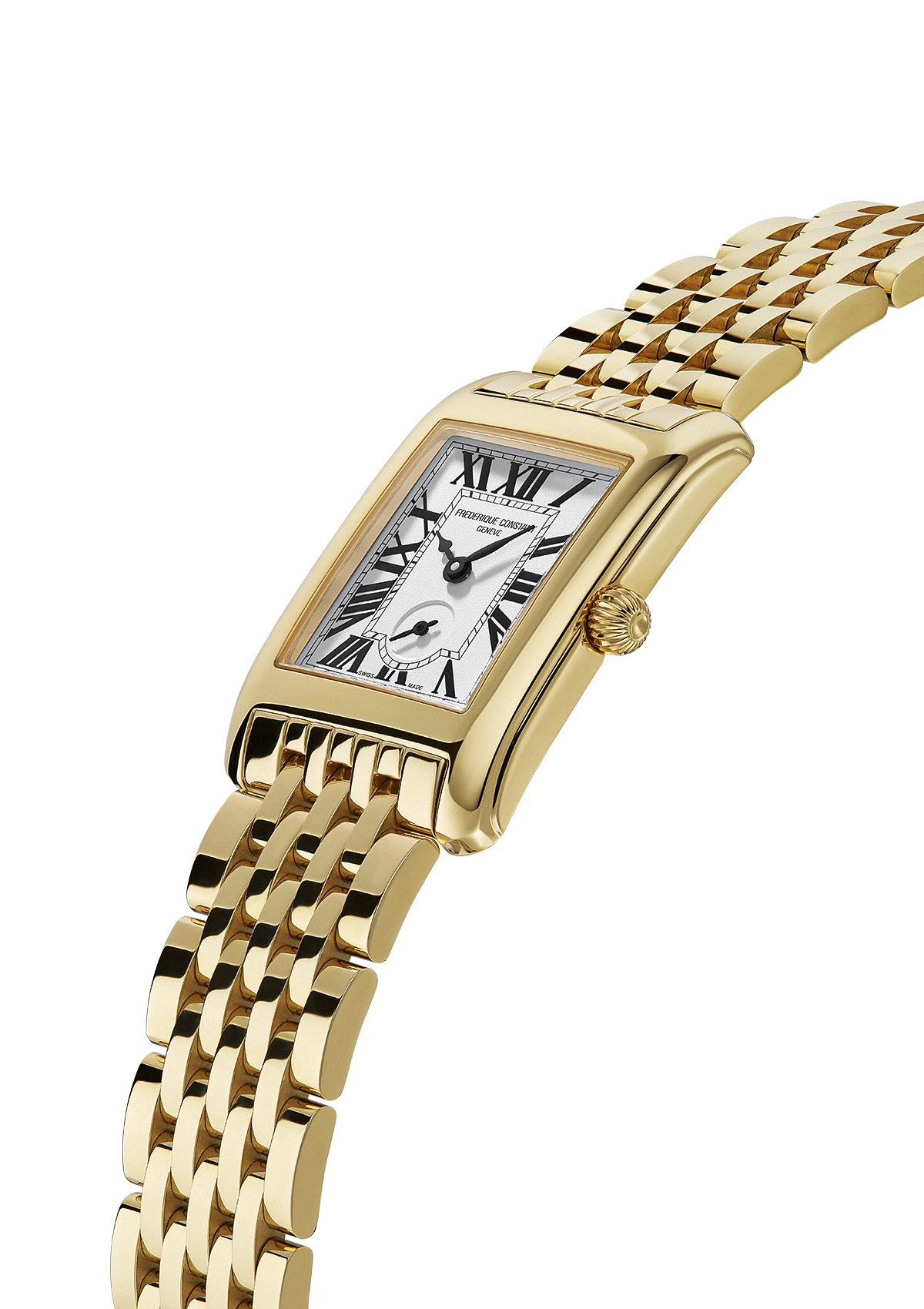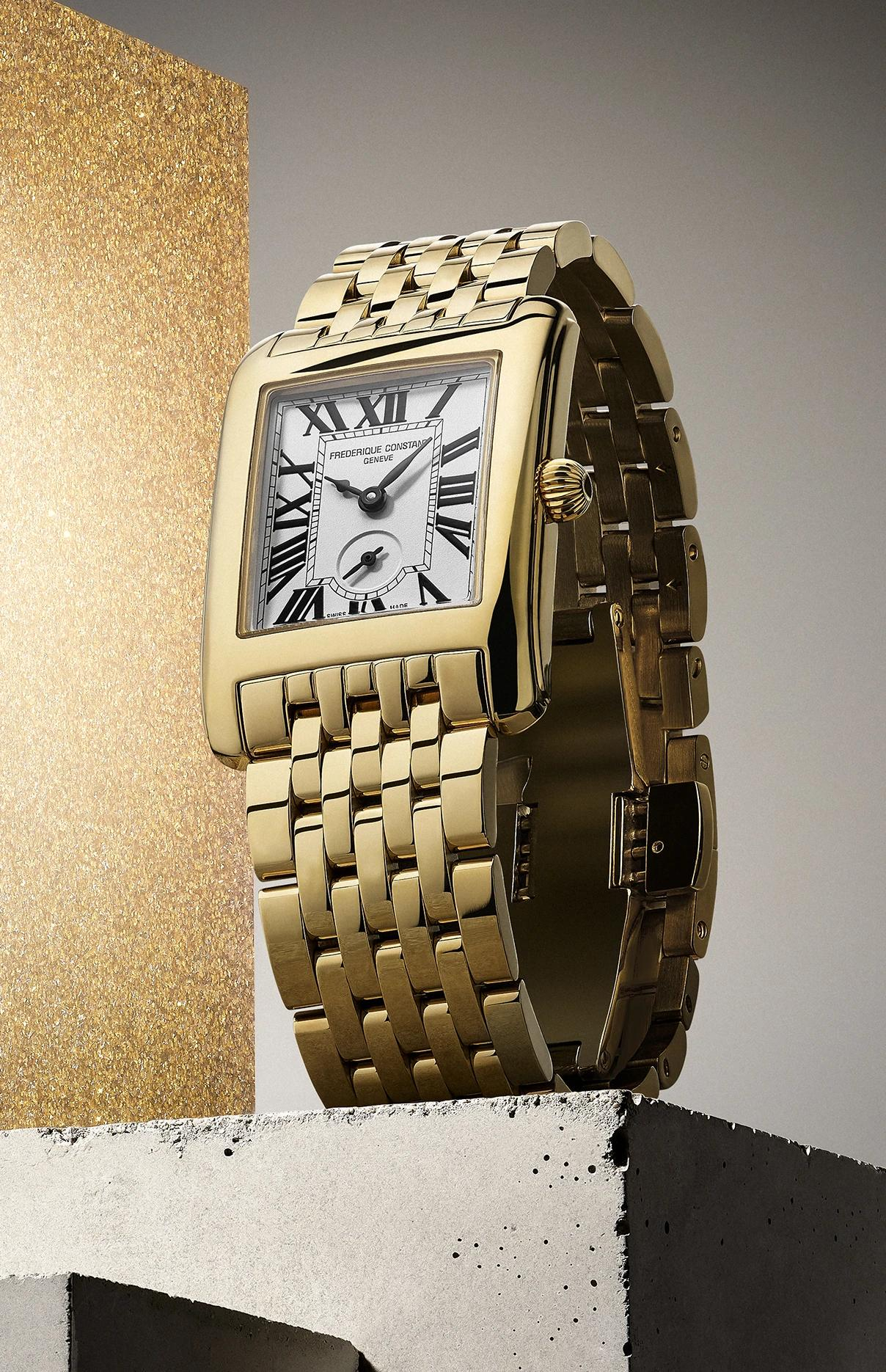 Dit Frederique Constant horloge is uitgerust met een quartzuurwerk. Het goudkleurige stalen horloge heeft een 36mm stalen kast en chique aansluitende band. De Classics Carrée-stijl roept de Art Déco-geest van de jaren 20 en 30 op, met rechte, strakke lijnen en gedetailleerde vormen.