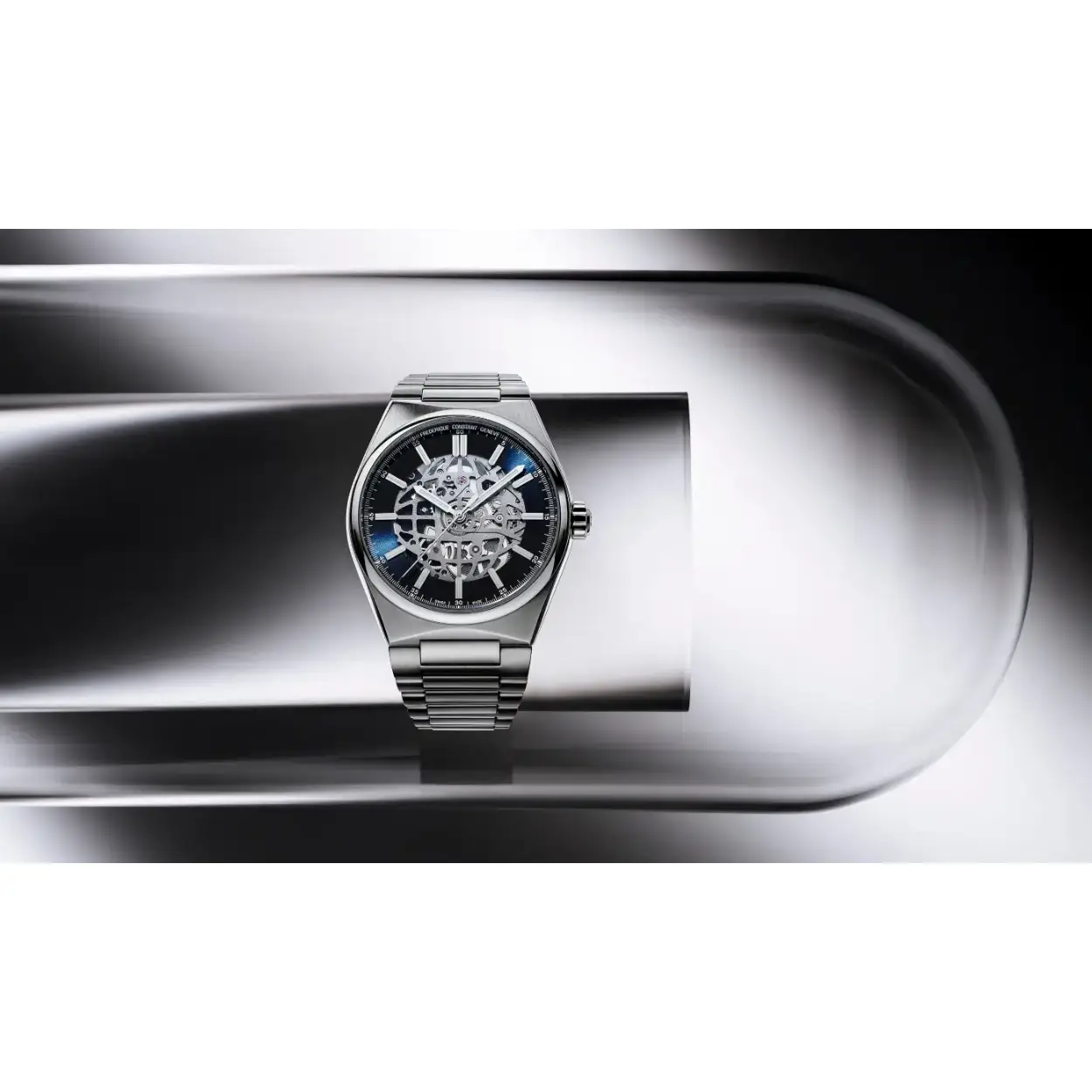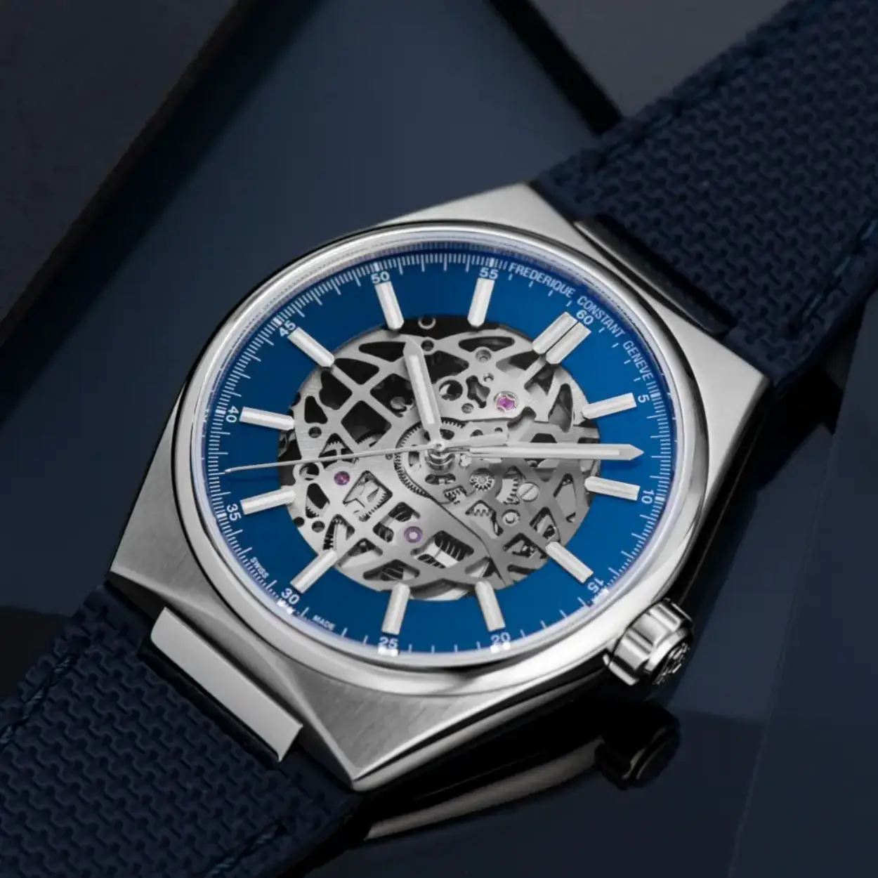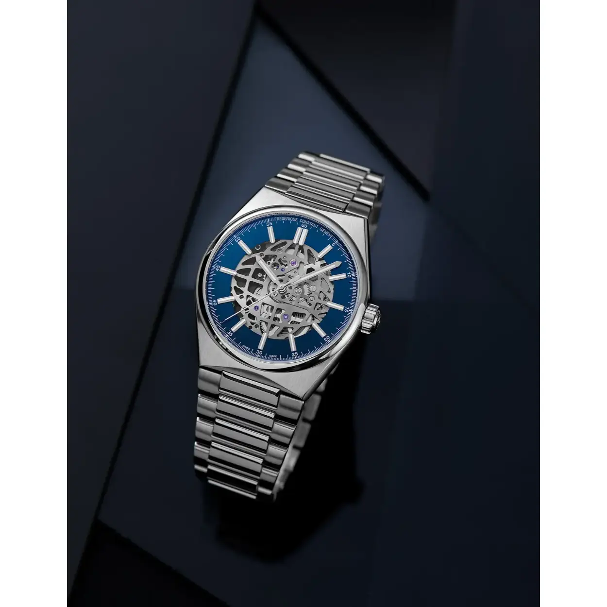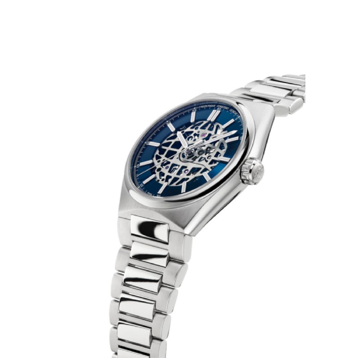 Dit opvallende Frederique Constant horloge heeft een automatisch FC-310 uurwerk met een gangreserve van 38 uur. Dit uurwerk is te zien is door de opengewerkte blauwe wijzerplaat. Het horloge heeft een stalen kast en band en wordt geleverd met een extra blauwe rubberen band. De kast is voorzien van een krasvrij saffierglas aan beide zijden en heeft een diameter van 41MM. Het horloge is getest op een waterdichtheid van 5 ATM / 50 M.