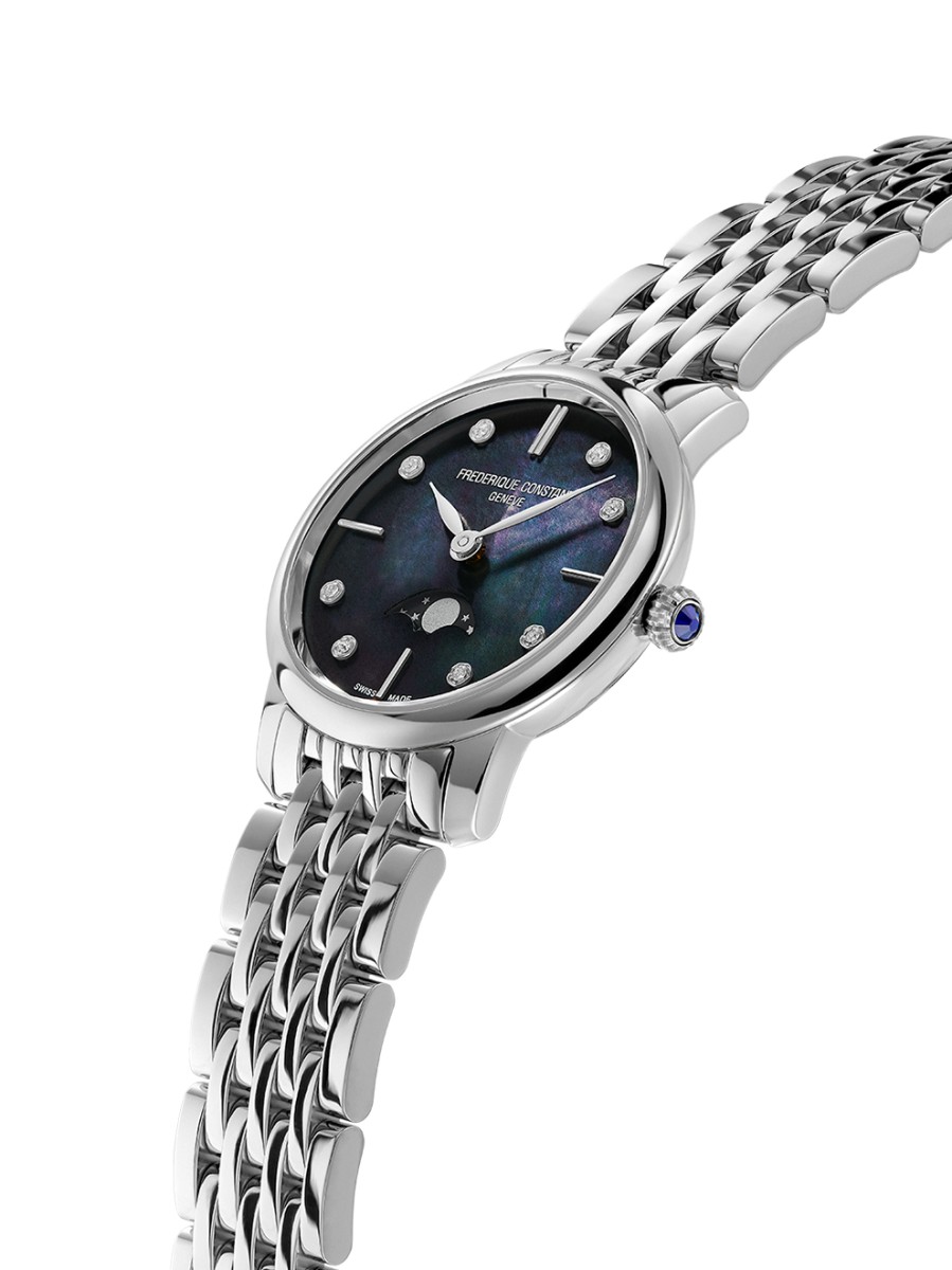 Fijnheid van de pols, fijnheid van het horloge: de Slimline Ladies is ontworpen om de zachte rondingen van de pols te benadrukken met harmonie en gevoeligheid. Een kostbare en eigentijdse collectie in de puurste geest van Frédérique Constant, waar de luxe horlogemaker Swiss Made toegankelijk blijft.
