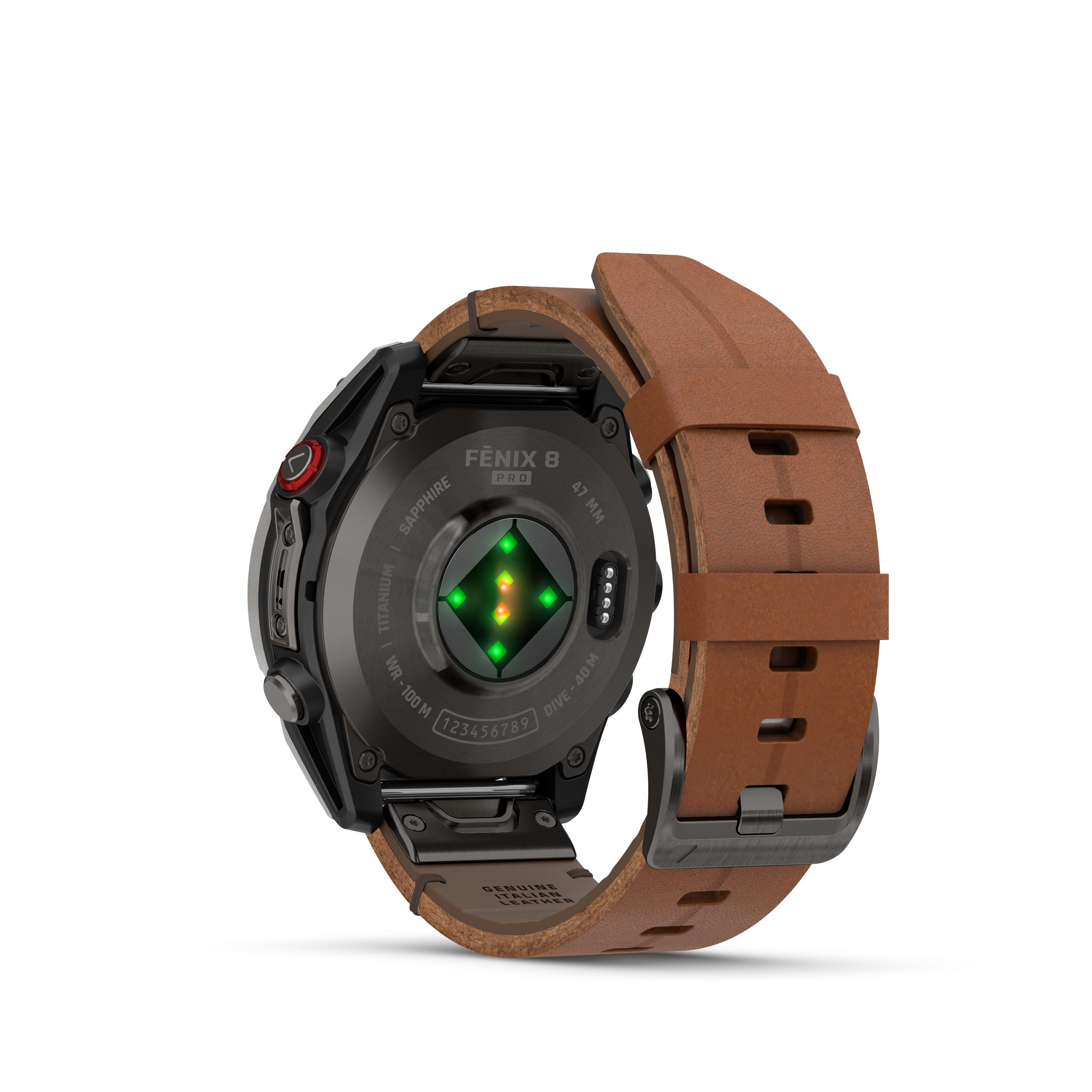 Met een duikclassificatie van 40 meter, lekvrije metalen knoppen en ondersteuning voor duikactiviteiten op het gebied van scubaduiken en apneu kun je nieuwe diepten bereiken. Het horloge heeft een batterijduur van 15 dagen in smartwatch- modus en tot wel 8 dagen in always- on modus. Het horloge wordt geleverd met een bruine lederen band en een zwarte rubberen band.