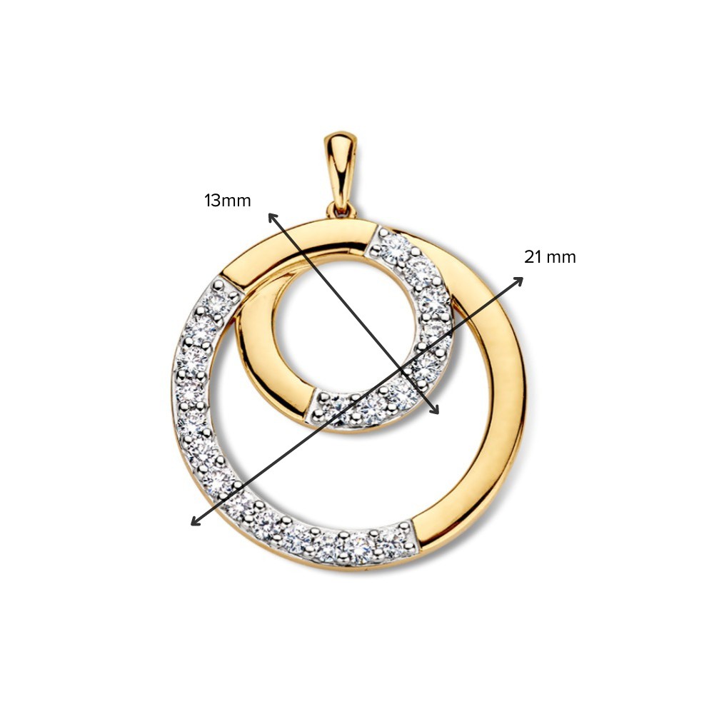Schitterende 14krt geelgouden hanger met ronde vormgeving, de hanger is op asymmetrische wijze gezet met prachtige briljanten.