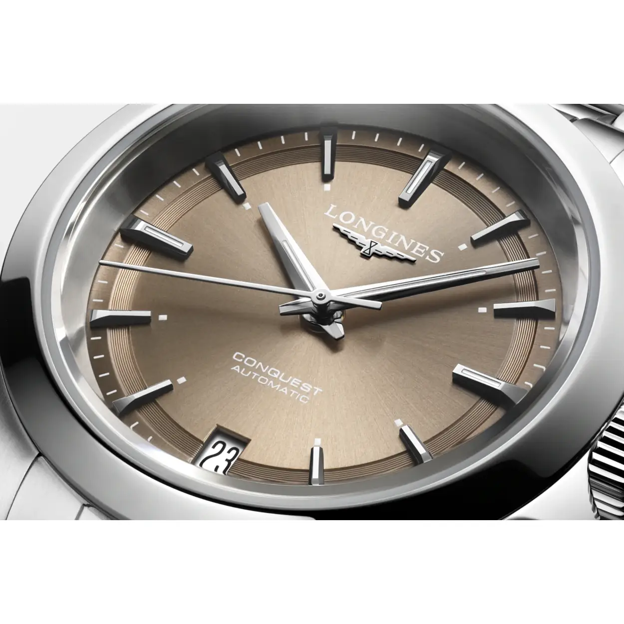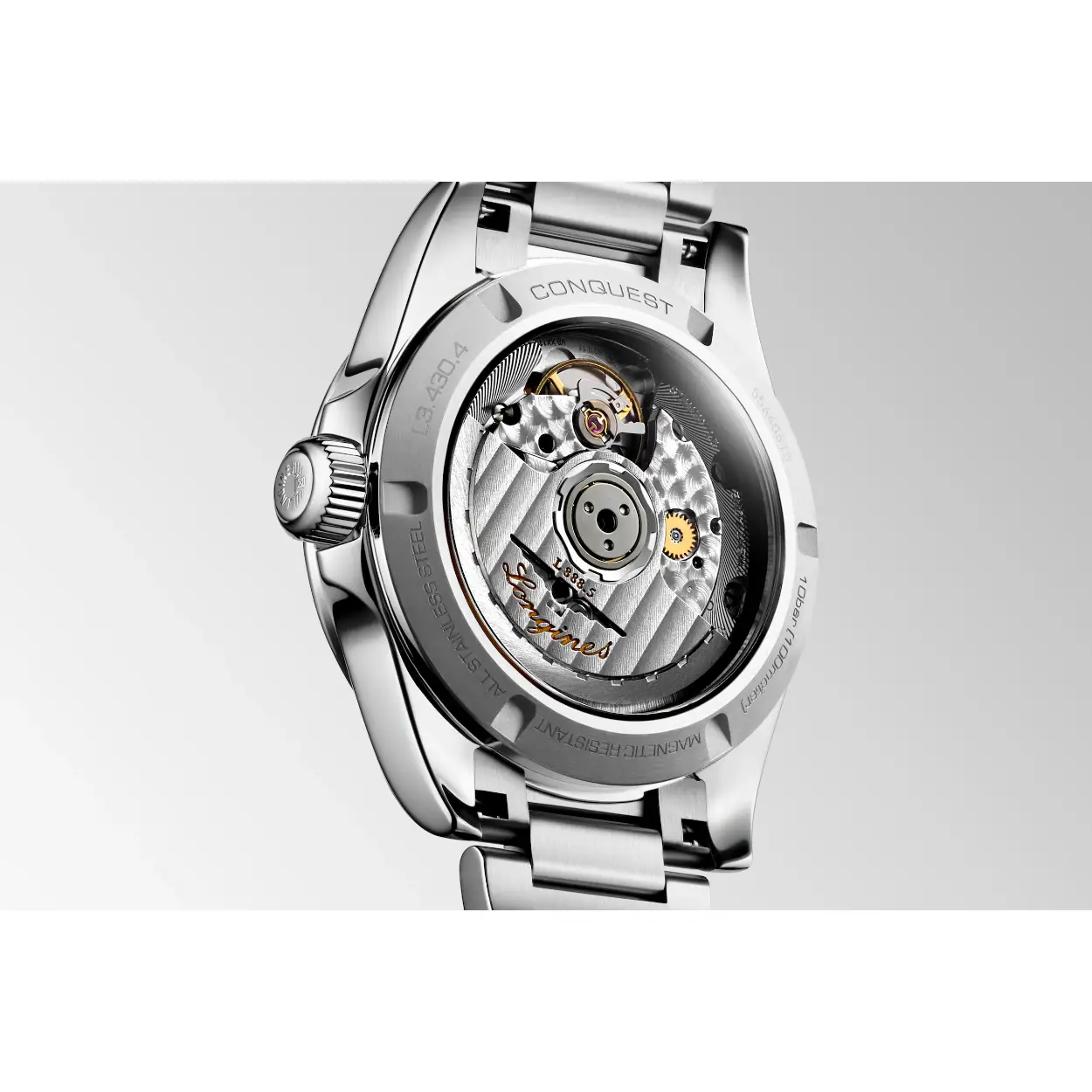De Longines is voorzien van een automatisch uurwerk met een gangreserve van 72 uur. De kast en band zijn gemaakt van roestvrij staal. Het horloge heeft een diameter van 34 mm en is getest op een waterdichtheid van 10 ATM / 100 meter. Het horloge heeft een krasbestendig saffierglas met meerdere lagen anti-reflecterende coating aan beide zijden en een geschroefd en transparant achterdeksel met saffierglas.