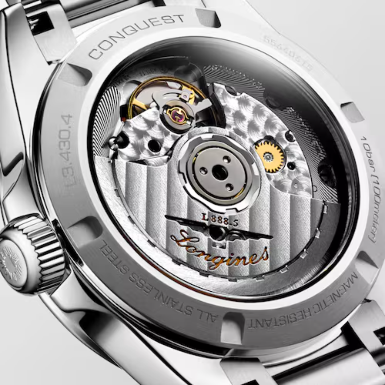 Dit Longines Conquest horloge is uitgerust met een automatisch kaliber L888 uurwerk met een gangreserve van 72 uur. De kast en band zijn gemaakt van staal. De pastelblauwe wijzerplaat is voorzien van een datum venster op 6-uur, de wijzers en indexen zijn afgewerkt met Zwitsers Super-LumiNova® voor een betere leesbaarheid in het donker. Het horloge heeft een diameter van 34 MM en is getest op een waterdichtheid tot 10 ATM / 100 M. Het horloge heeft een krasvrij saffierglas met een anti-reflectieve coating aan beide zijden.
