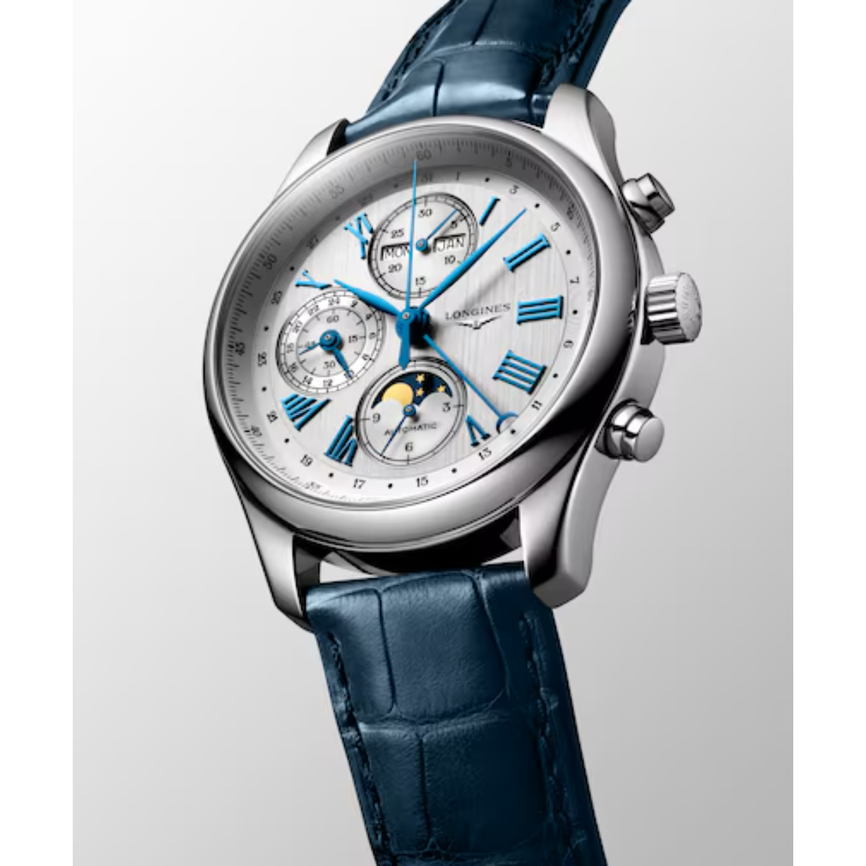De Longines is voorzien van een kaliber L687 uurwerk en de kast is gemaakt van roestvrij staal. Het horloge heeft een diameter van 42 mm en is getest op een waterdichtheid van 3 ATM. De band is gemaakt van blauwkleurig leder. Met 5 jaar garantie op het uurwerk.