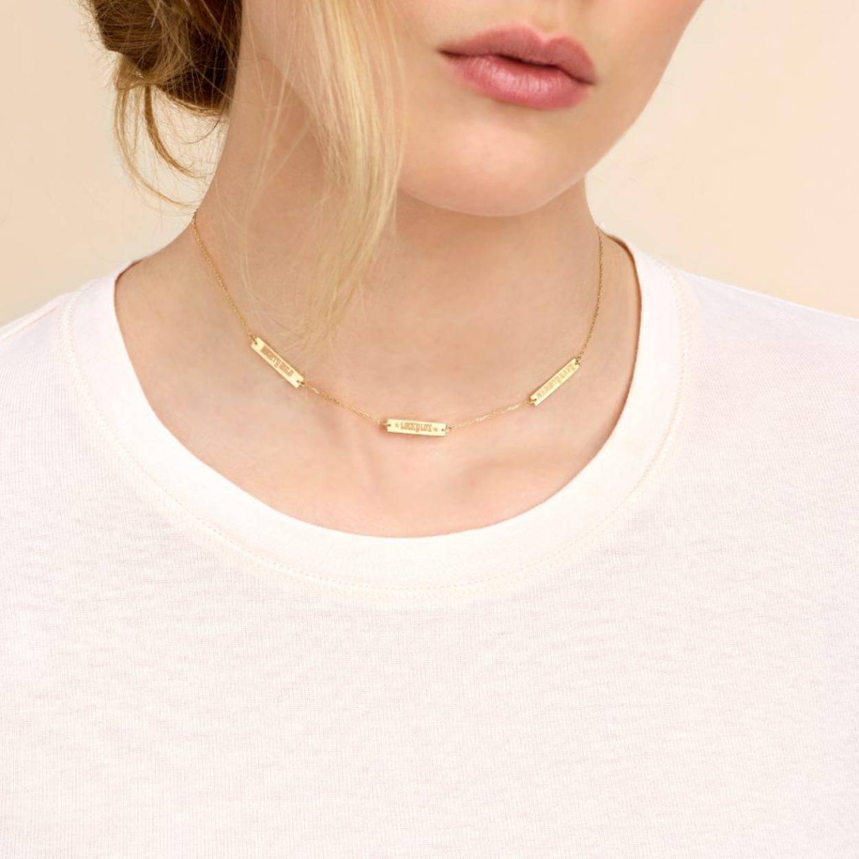Dit prachtige 18 karaat geelgouden Minitials Lucky Lux collier is voorzien van drie 18 karaat plaatjes. De plaatjes kunnen gegraveerd worden met een gedenkteken zoals een (handgeschreven tekst, een hartslag of een persoonlijke tekening. Ook kunnen de plaatjes gelaserd worden met een vingerafdruk.