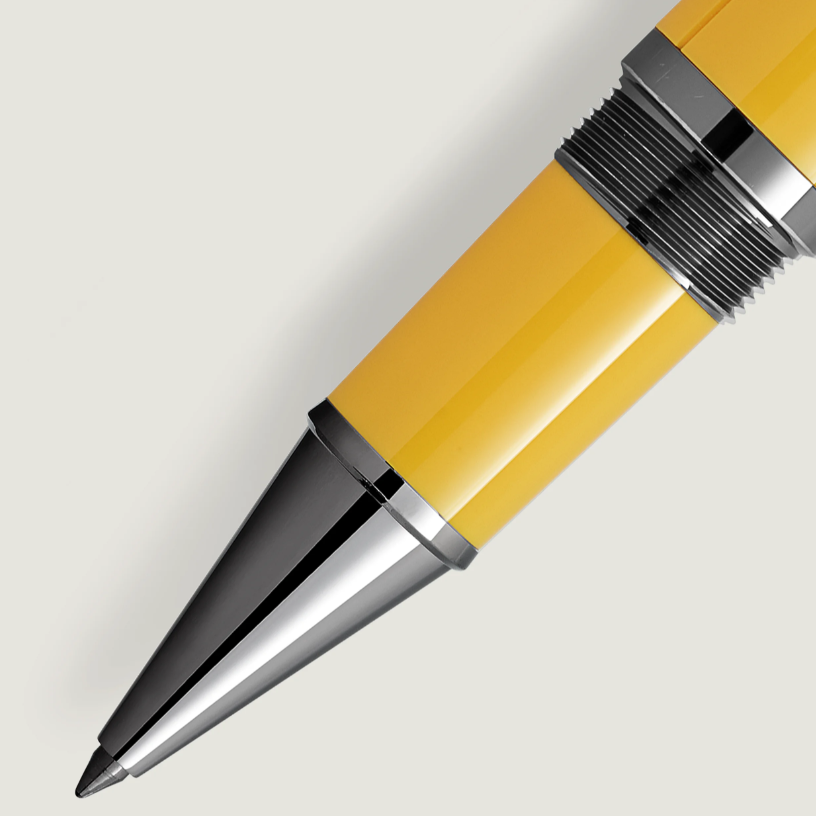 De naam Ferrari staat voor esthetisch design, krachtige motoren, bijna eindeloze technische innovatie en een van de meest invloedrijke mannen in de autogeschiedenis. Met een enorme visie en een ongebreidelde passie voor de motorsport leidde Enzo Ferrari zijn bedrijf naar ongeëvenaarde prestige en creëerde een legende die voortleeft. Montblanc heeft de Montblanc Great Characters Enzo Ferrari Special Edition opgedragen aan de man en zijn passie voor racen. Geïnspireerd door zowel het embleem van Enzo Ferrari's geboorteplaats Modena, als de emblematische kleur van het logo van de Scuderia, eert deze editie Ferrari's tweede ziel - de kleur geel. De data van Enzo Ferrari's geboorte en zijn eerste raceoverwinning zijn gegraveerd op de kegel, terwijl zijn handtekening en de naam van de werkplaats van zijn vader, 'Officina Meccanica Alfredo Ferrari', verwijzend naar Enzo Ferrari's geboorteplaats, zijn gegraveerd op de bovenkant van de dop. Het wordt bekroond door het Montblanc-embleem in kostbare blauwe hars - als een extra eerbetoon aan het embleem van Modena - en omgeven door ingewikkeld metaalwerk dat doet denken aan een vintage autogrille. De eerste overwinning van Enzo Ferrari, op het Circuito del Savio, markeerde ook het begin van het inmiddels beroemde Ferrari-logo. Onder de vele toeschouwers die Enzo Ferrari's gedurfde rijstijl die dag bewonderden, was de familie van de toppiloot Francesco Baracca, die tijdens de Eerste Wereldoorlog in dezelfde eenheid had gediend als Enzo's broer Dino. De moeder van Francesco Baracca, gravin Paolina Biancoli, stelde voor dat Enzo Ferrari het embleem van een steigerend, ongebreideld paard van het vliegtuig van haar zoon op zijn raceauto's zou gebruiken voor geluk. De associatie van het paard met de moed en de wil om te domineren van een nationale held, maakte het een ideaal symbool voor Enzo. Negen jaar later, in 1932, werd de Cavallino Rampante voor het eerst gebruikt op een gele achtergrond om een ​​auto te versieren tijdens de 24 uur van Spa, en het Scuderia Ferrari-team behaalde de eerste en tweede plaats met twee auto's met het steigerende paard. De Cavallino Rampante is gegraveerd op de dop van de Montblanc Great Characters Enzo Ferrari Special Edition, samen met de woorden van de gravin: ‘Le porterà fortuna’ (‘Het brengt je geluk’). De eerste auto die Ferrari maakte, de 125 S, met twaalf cilinders, verliet de fabriek in Maranello op 12 maart 1947. Twaalf gegraveerde lijnen symboliseren de twaalf cilinders. Enzo Ferrari’s motto, ‘Je kunt passie niet beschrijven, je kunt het alleen leven’, siert de ruthenium-gecoate clip.